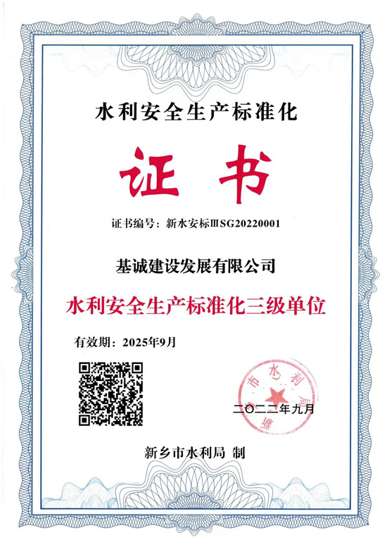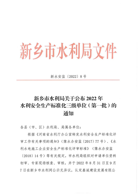 新乡市水利局关于公布2022年水利安全生产标准化三级单位(第一批)的通知