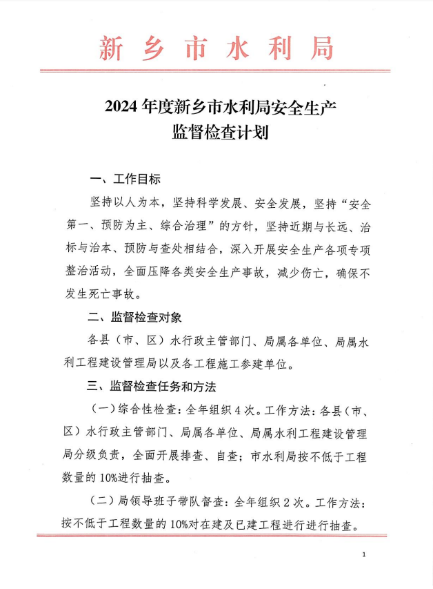 2024年度新乡市水利局监督检查计划