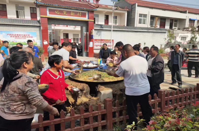 寻味故乡,老家味道就是一碗喷香扑鼻的肉米饭。在平原新区师寨镇峪里新村,来自小浪底水库的移民群众在村委会门口垒上土灶台,支上大铁锅,焖上一锅洛阳传统肉米饭,你一勺我一碗,家乡的味道就是香!大家围坐在一起回忆老家日子,乐享搬迁安置新生活。