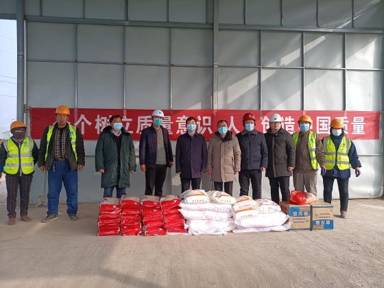 同时谌永强同志还详细询问坚守在工地一线的施工人员的工作、生活情况,亲切地向他们表达了深切关怀和感谢,对项目施工人员的奉献精神予以充分肯定,致以新春问候,并送上了米、面、油、猪肉等年货物资,希望他们在工地上度过一个快乐祥和的新年。
