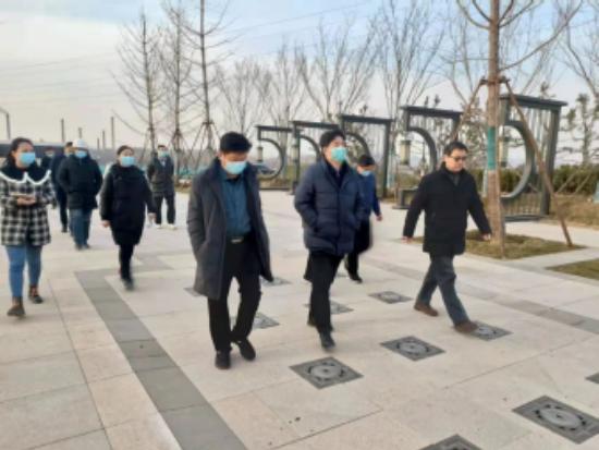 首先到达生态绿化项目一标段游客中心景观节点施工现场,屈培源副局长向调研组介绍了生态绿化项目总体规划及概况,汇报了一标段厚德载物区与凤凰来仪区的工程建设进展情况;郭树东副局长汇报了凤泉湖引黄调蓄及配套工程(一期)整体规划及目前实施情况;调研组对游客中心节点施工现场进行查看。