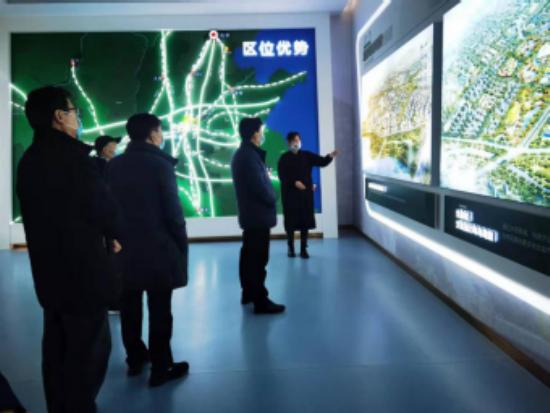 随后调研组一行到达二标段展示中心广场,屈培源副局长对二标段展示中心区、牧野新韵区及运河笙歌区三个区的工程进展情况进行了汇报,随后陪同张书记一行进入生态城展示中心调研生态城的整体规划,讲解员通过视频和展板,逐个展厅的向调研组介绍了山水林田湖草一体化生态城的规划理念、功能分区、生态理念、工程情况、产业布局。