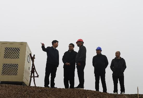 3 月 13 日上午, 春风扑面,薄雾如纱,魏建平市长轻车简从,在市水利局局长谌永强及建管局有关人员陪同下,到凤泉湖引黄调蓄工程建设工地进行现场调研督导。