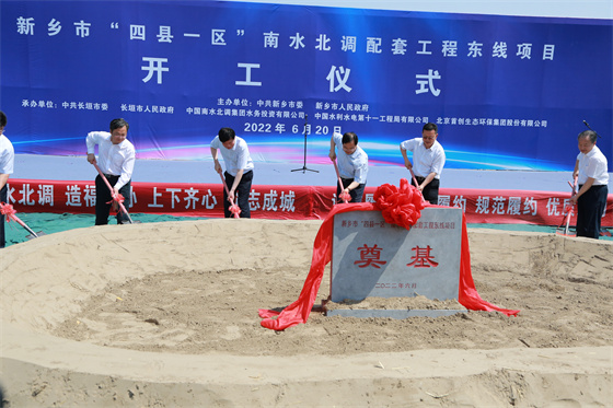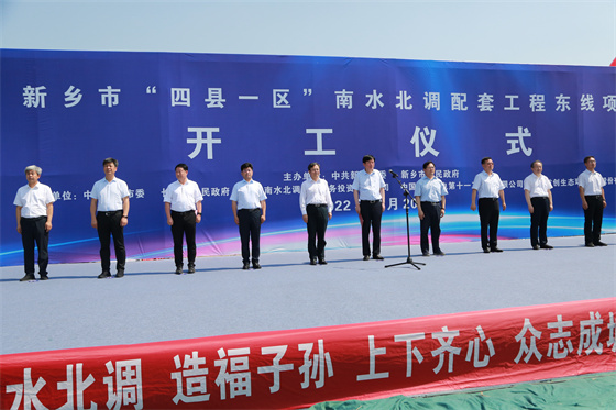 2022年6月20日,新乡市举行了“四县一区”南水北调配套工程东线项目开工仪式。省政府副省长刘玉江、中国南水北调集团党组书记、董事长蒋旭光、省水利厅党组书记刘正才、新乡市委书记李卫东出席活动,中国南水北调集团中线有限公司、中国南水北调集团水务投资公司、中国水利水电第十一工程局有限公司、河南水利投资集团有限公司主要负责同志及新乡市水利局、南水北调运行保障中心,长垣市委、市政府和相关部门的主要负责同志,项目建设管理、运营、施工、设计、监理单位代表参加会议。开工仪式由新乡市政府副市长武胜军主持。