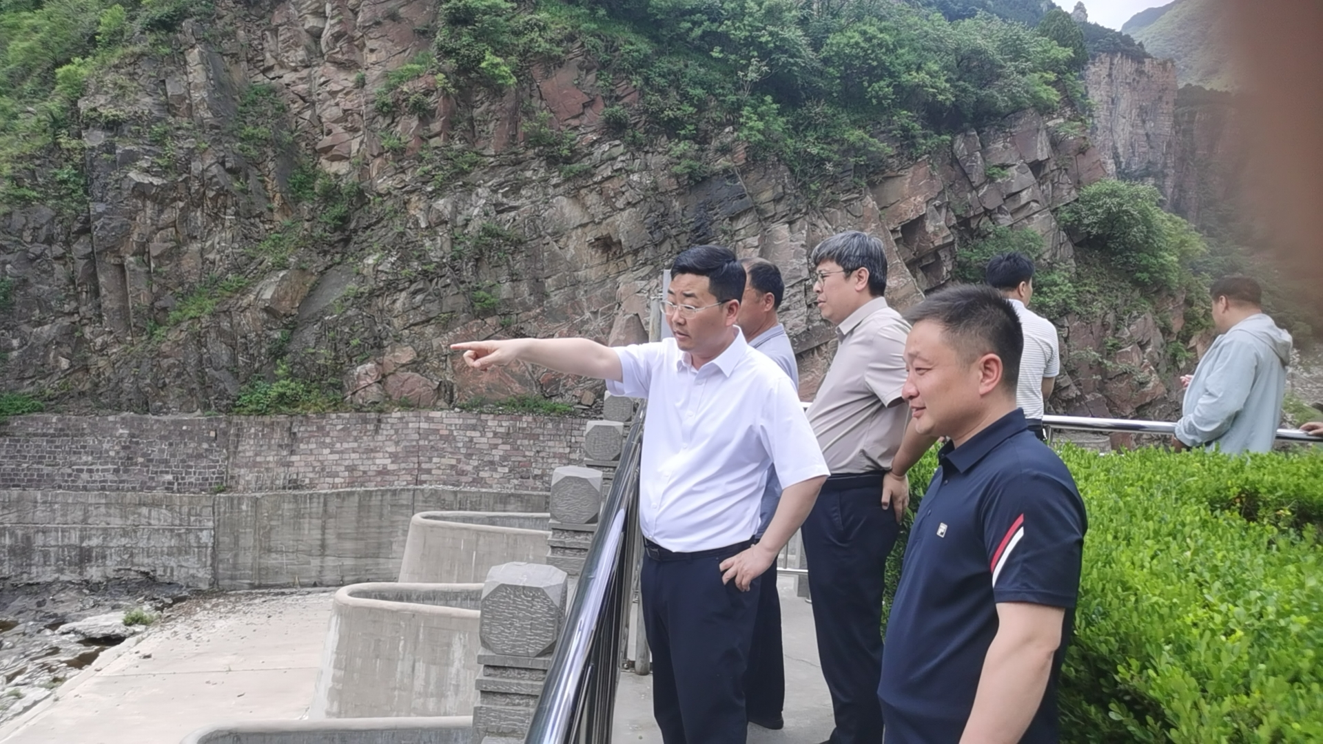 在楼罗掌水库、三郊口水库、陈家院水库、香泉水库,谌永强指出,楼罗掌水库一定要落实限制运用措施;中小型水库要逐库明确公示水库大坝安全责任人,小型水库要明确公示防汛“三个责任人”,涉及人员调整要及时变更报备,确保责任压实到位;主汛期要加密观测频率,发现问题及时处置;水库溢洪前,要及时向下游预警,并按规定报告;加强人员培训,补充防汛物资,保障水库安全度汛。