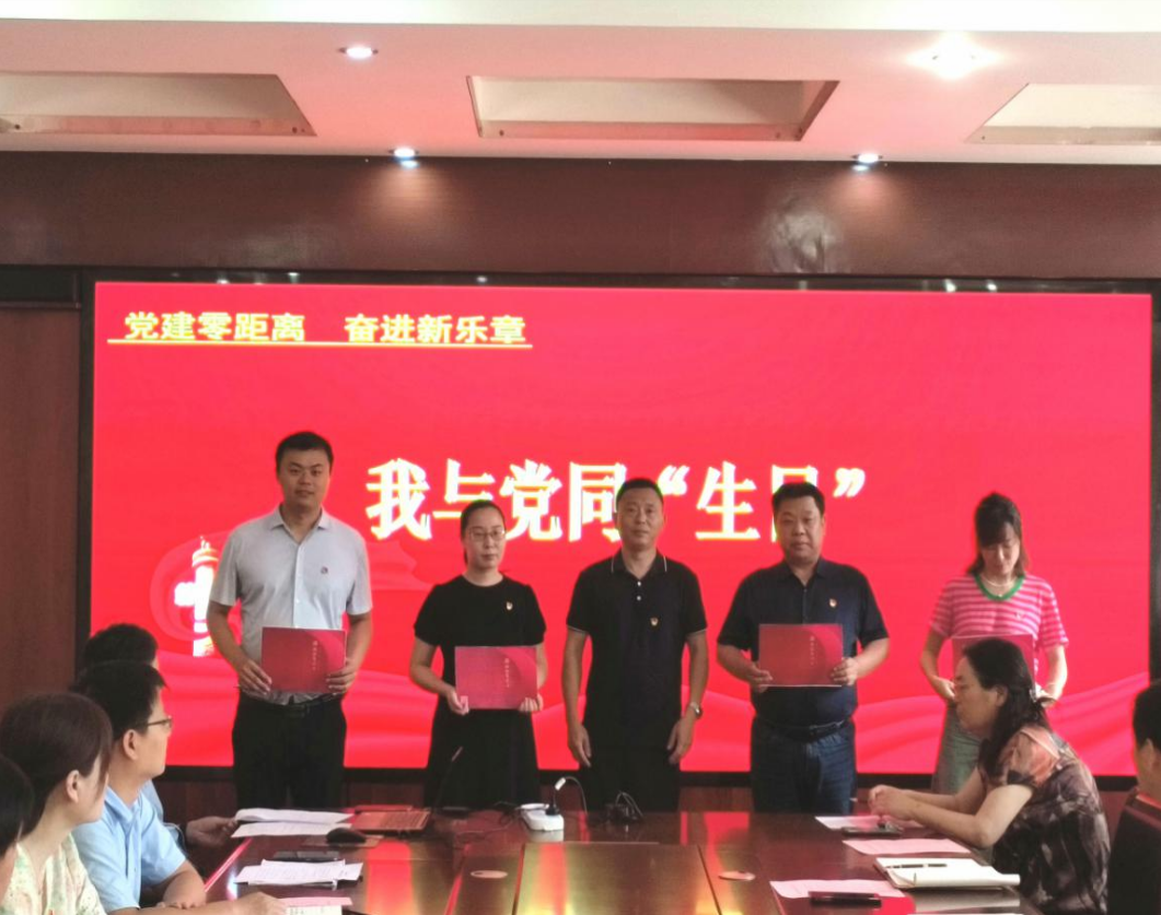 活动现场,组织委员将精心准备地印着党徽的“政治生日”贺卡赠送给6月政治生日的党员,以此表达党支部对党员亲切的问候和美好的祝愿,希望党员们进一步坚定理想信念,时刻牢记党员身份,不忘入党初心,践行入党誓词,永葆共产党员的本色。随后,党员集体面对鲜红的党旗,重温入党誓词。“我志愿加入中国共产党,拥护党的纲领……”一句句坚定响亮的声音再一次在耳边响起。