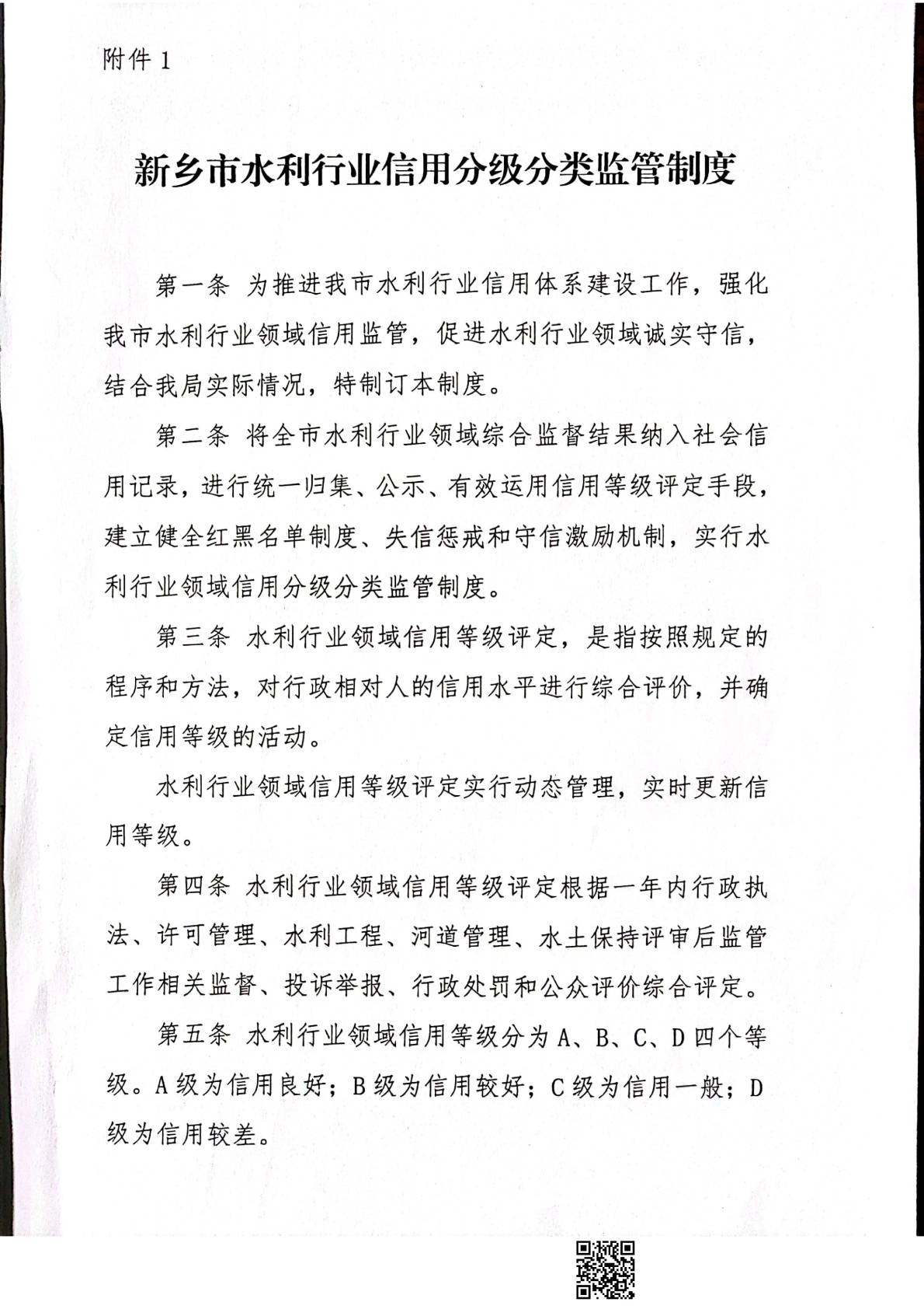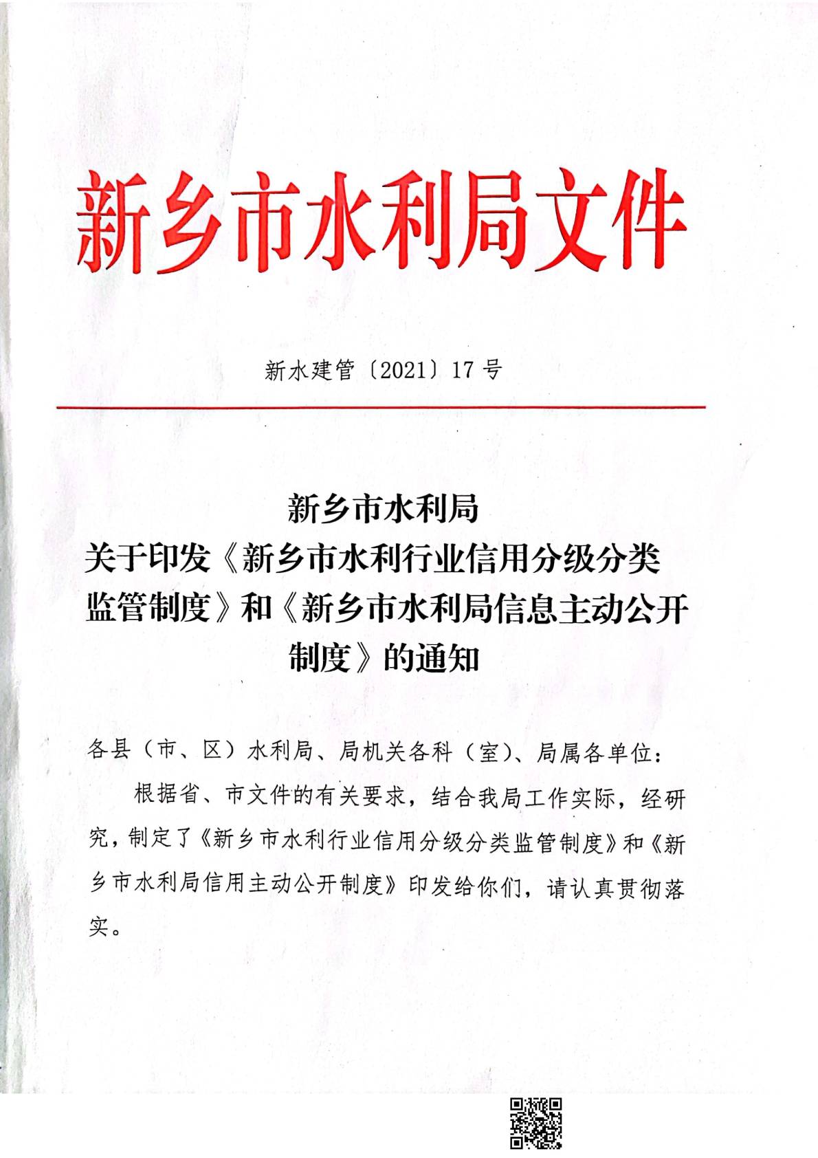 新乡市水利局关于印发《新乡市水利行业信用分级分类监管制度》和《新乡市水利局信息主动公开制度》的通知