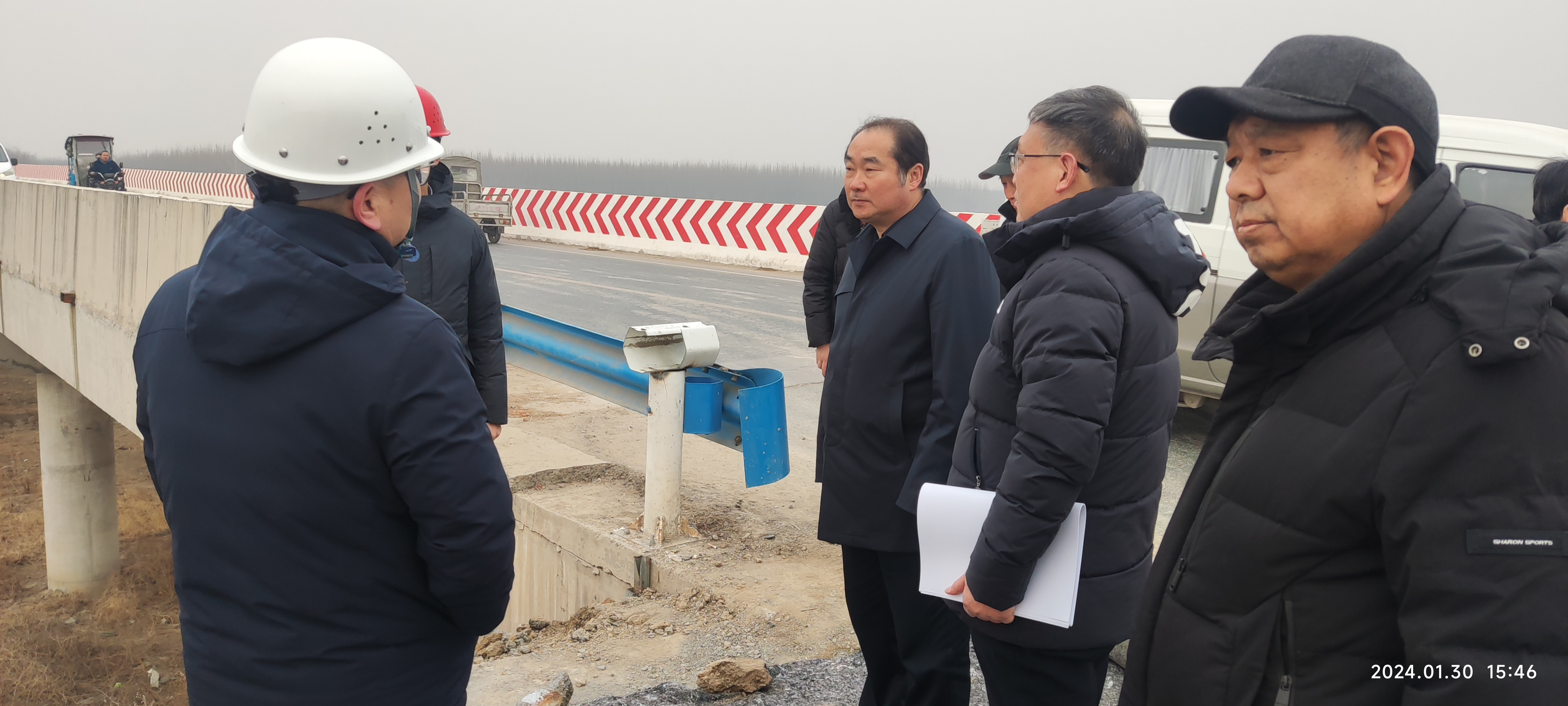 随后,郭厅长在栗屯桥检查了共产主义渠治理项目的堤顶混凝土道路施工,针对雨雪寒冷极端天气下施工作业,郭厅长提出了几点要求:一是施工单位要时刻关注天气变化,合理安排工期和工序;二是低温浇筑混凝土要注意做好防冻的处理,科学养护,保证浇筑质量;三是施工人员要做好保暖,严防冻伤事故发生。