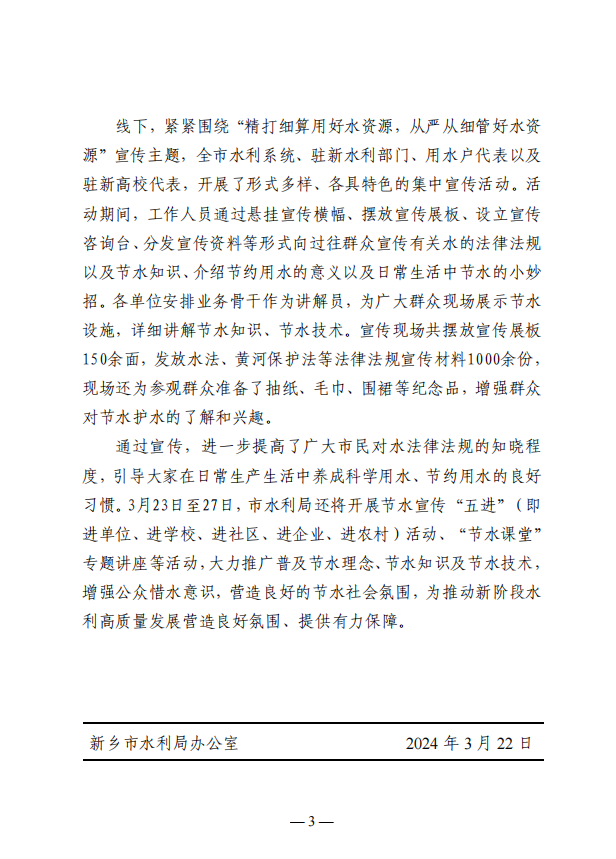 新乡市水利系统开展2024 年“世界水日”“中国水周”宣传活动