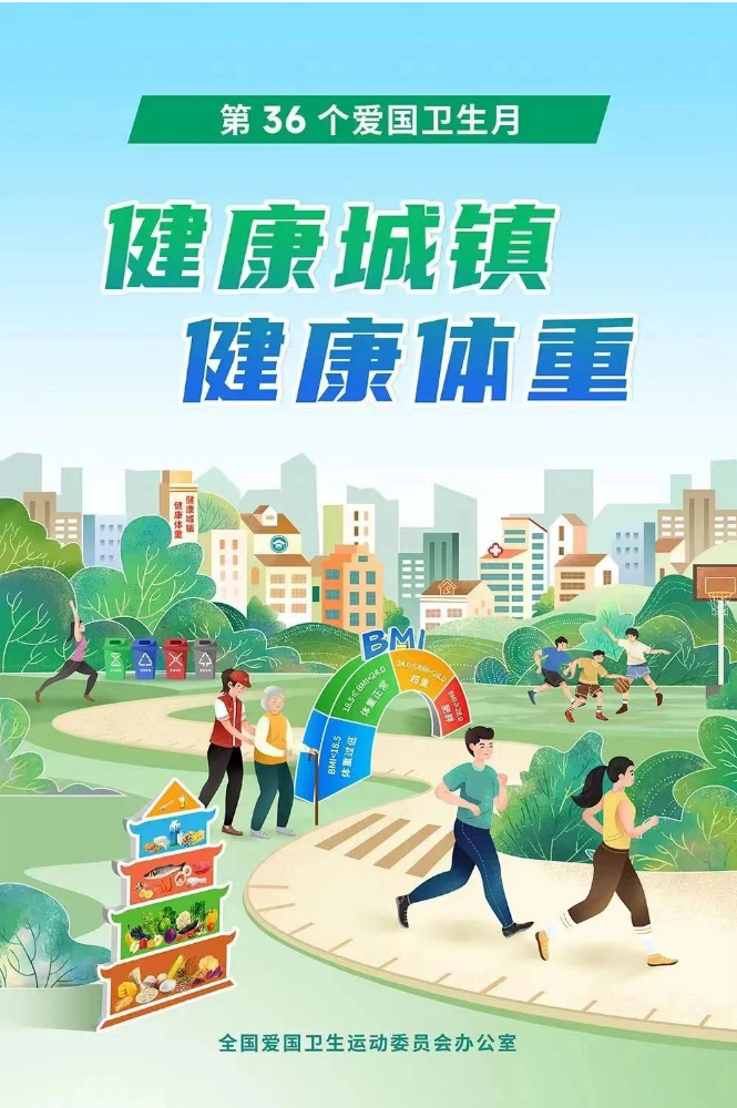 2024年4月是第36个爱国卫生月,活动主题“健康城镇 健康体重”