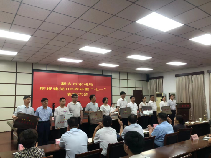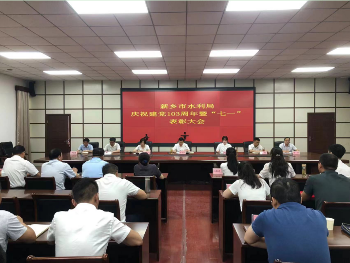 6月28日上午,新乡市水利局组织召开庆祝建党103周年暨“七一”表彰大会,市水利局领导班子成员、局属单位班子成员、局机关全体党员干部参加会议。
