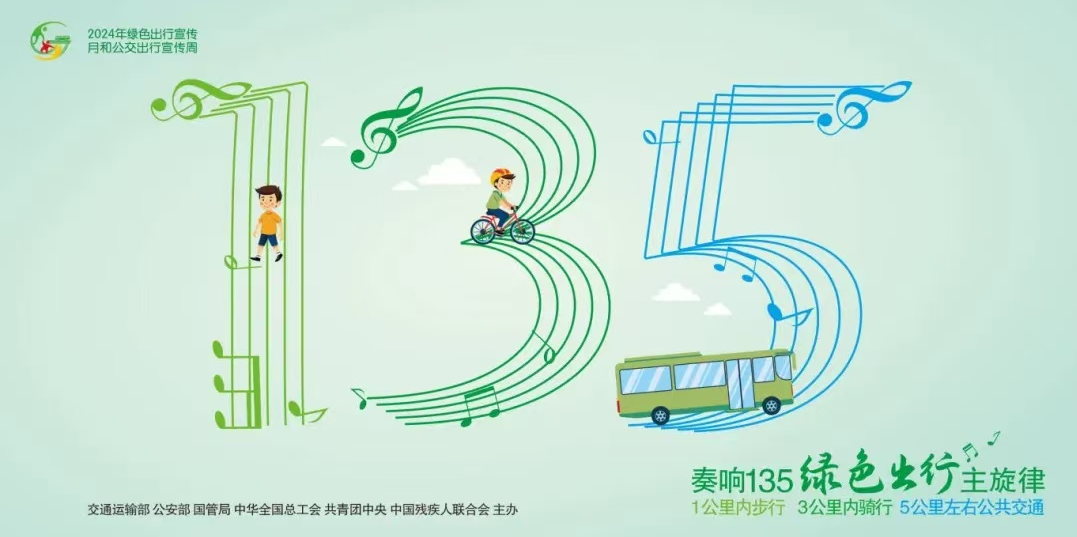 绿色出行不仅是一种出行方式,也是一种生活态度的体现。采用“135”绿色出行方式(1公里内步行、3公里内骑行、5公里内公交出行),把绿色出行的理念融入日常工作和生活中,主动养成节能、低碳、健康、环保的绿色出行习惯。让我们一起行动起来!从自身做起,从现在做起,做绿色出行的宣传者和践行者,使我们的城市少一点污染,多一份清新;使我们的道路少一点拥堵,多一份畅通;使我们的生活少一点烦恼,多一份健康!