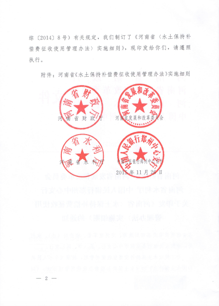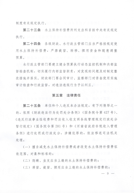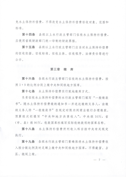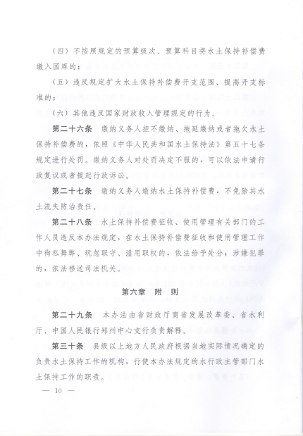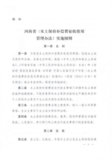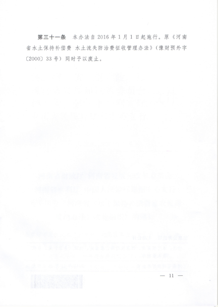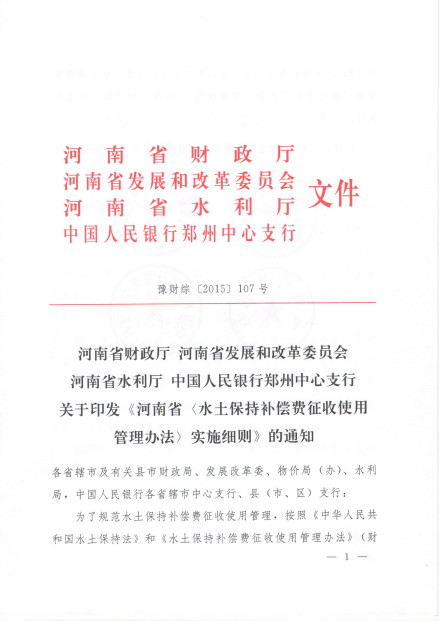 河南省《水土保持补偿费征收使用管理办法》实施细则(豫财综〔2015〕107号)