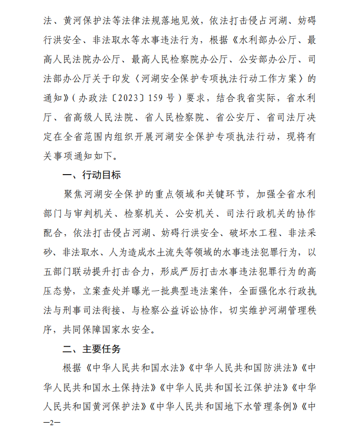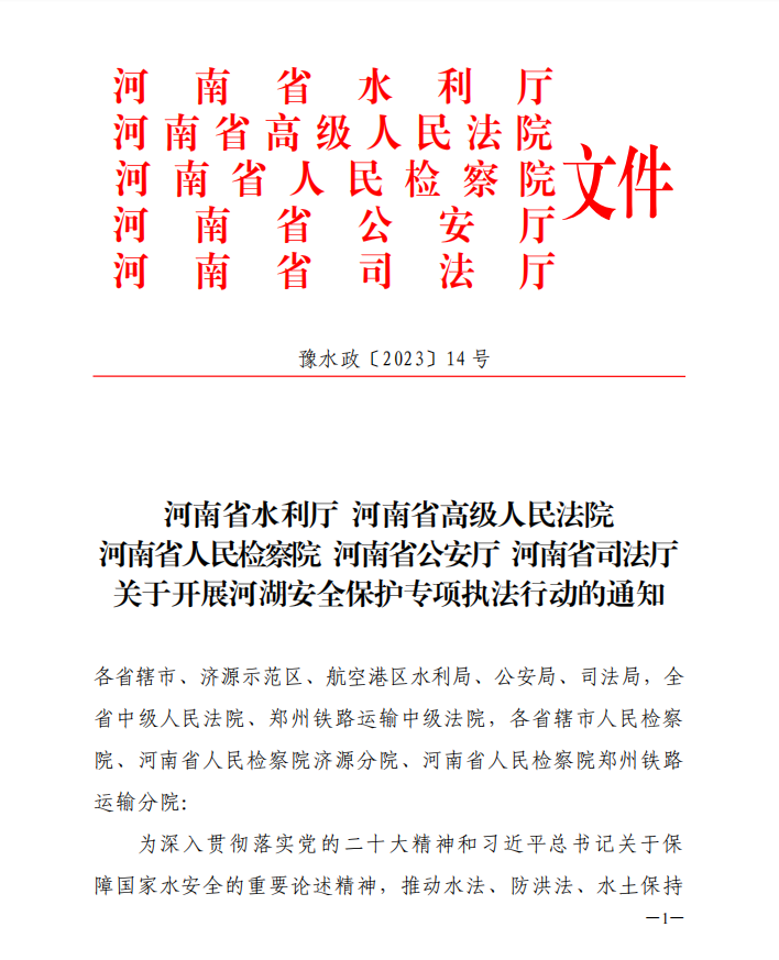 河南省水利厅 河南省高级人民法院 河南省人民检察院 河南省公安厅 河南省司法厅 关于开展河湖安全保护专项执法行动的通知
