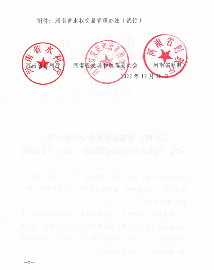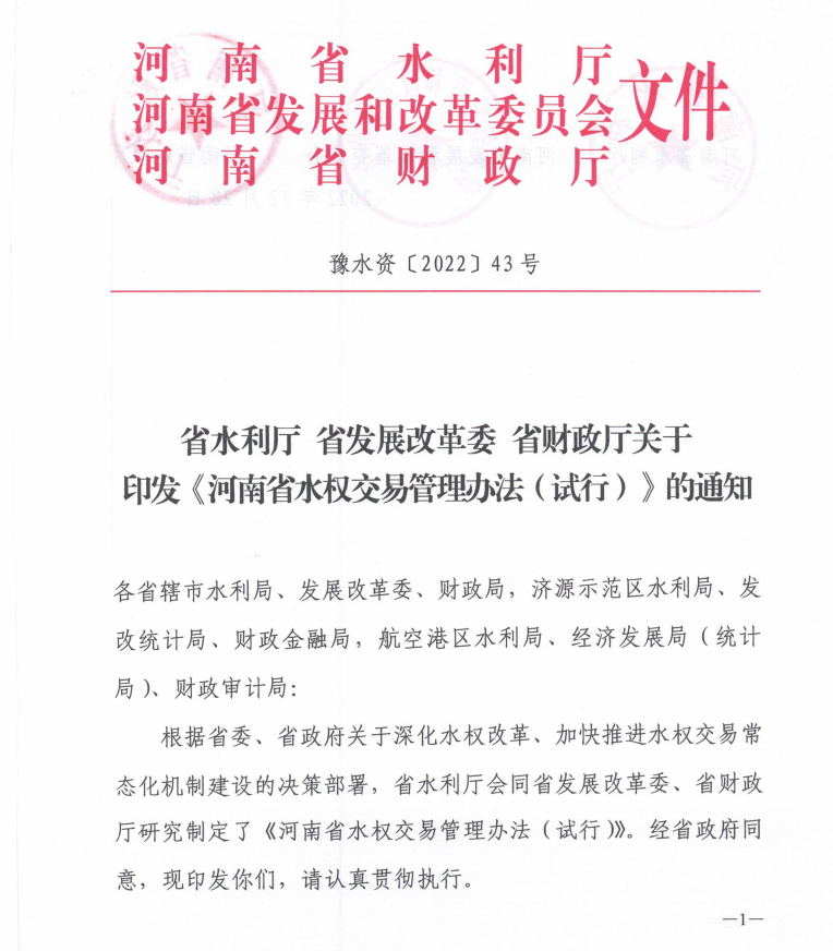 省水利厅省发改委省财政厅关于印发《河南省水权交易管理办法(试行》的通知