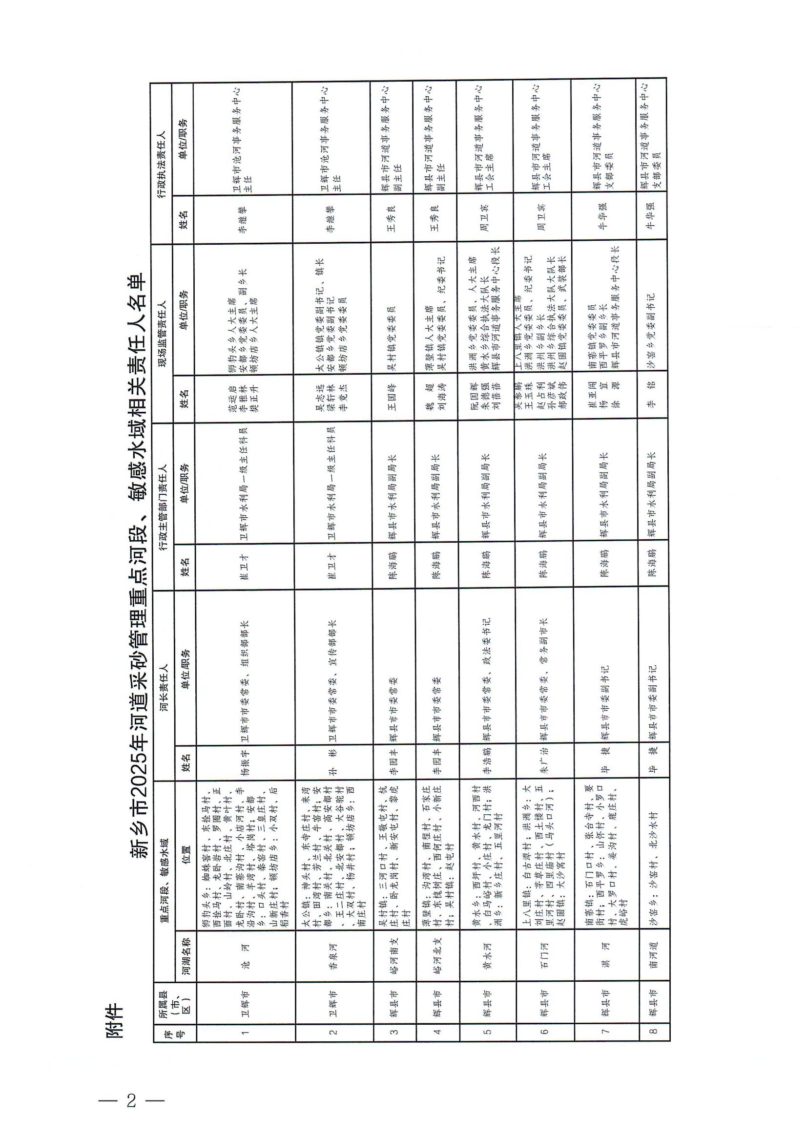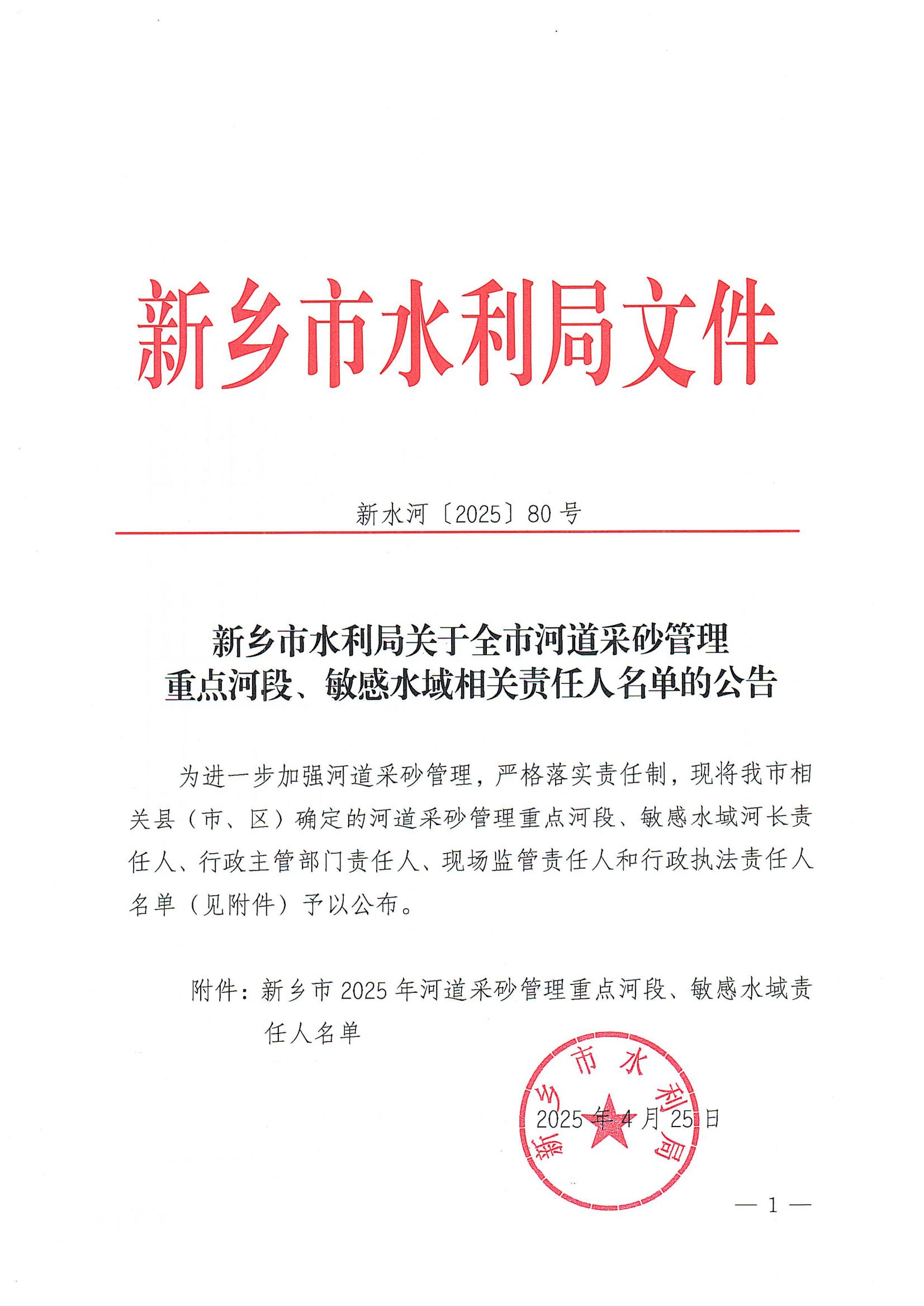 新乡市水利局关于全市河道采砂管理重点河段、敏感水域相关责任人名单的公告