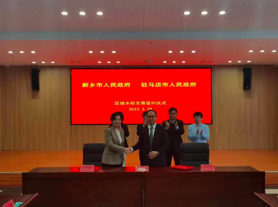 市副市长崔红建,市水利局局长谌永强到省公共资源交易中心,参加省水利厅组织的河南省水权交易集中签约仪式。