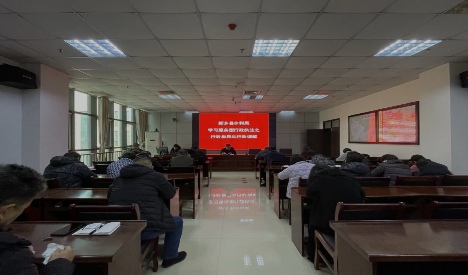 为深入贯彻落实习近平法治思想、习近平总书记治水重要论述,全面推进服务型行政执法建设工作,2023年11月21日,市水利局到新乡县水利局开展服务型行政执法“微宣讲、走基层”活动。市水利局水政科科长毛世轩同志以行政指导、行政调解为切入点对服务型行政执法进行了讲解。新乡县水行政执法人员及乡镇执法人员参加。