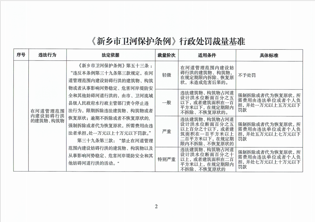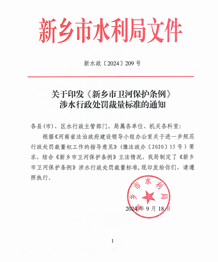 新乡市水利局关于印发《新乡市卫河保护条例》涉水行政处罚裁量标准的通知