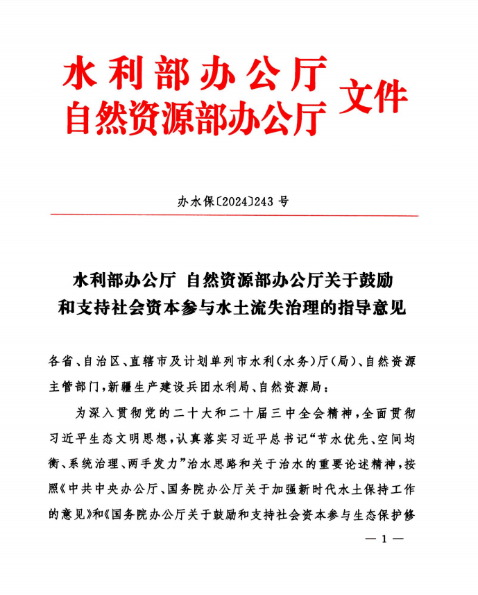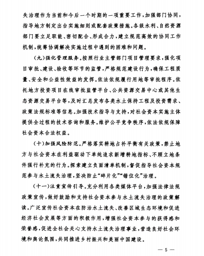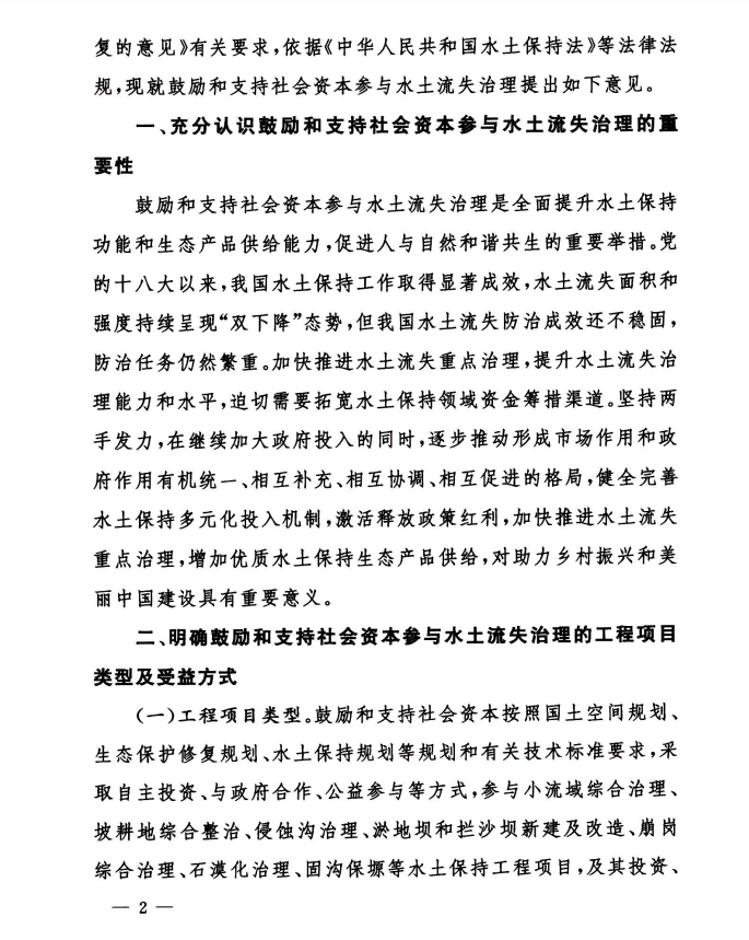 关于鼓励和支持社会资本参与水土流失治理的指导意见