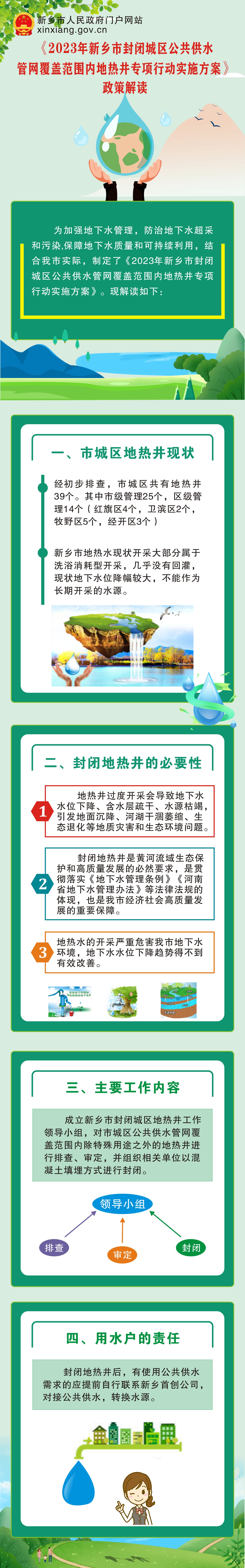 《2023年新乡市封闭城区公共供水管网覆盖范围内地热井专项行动实施方案》政策解读