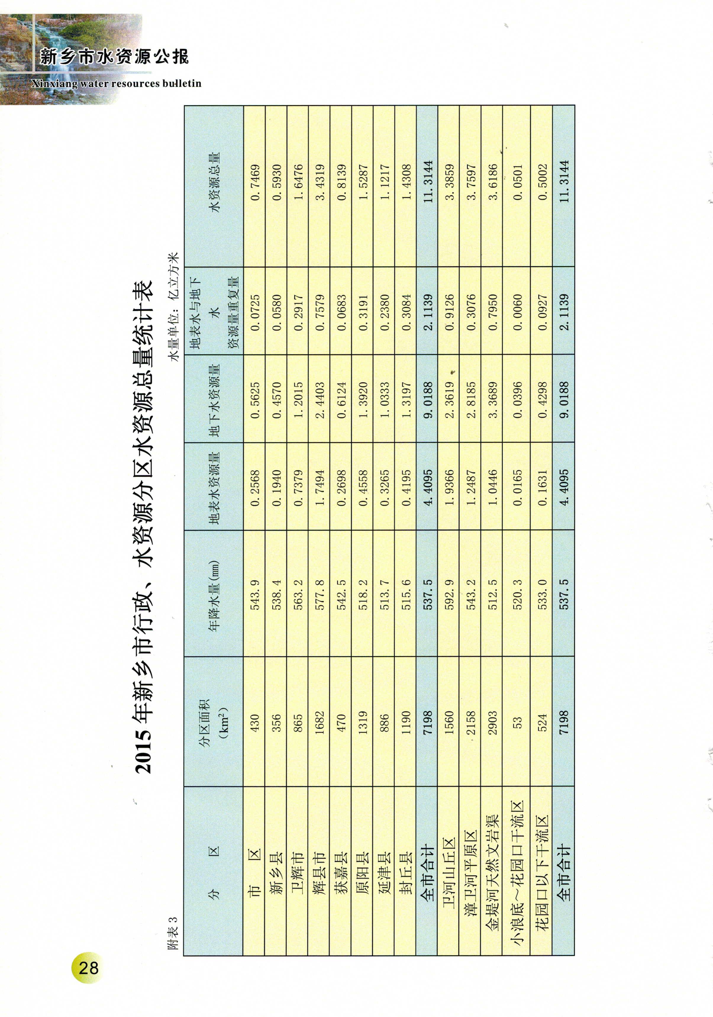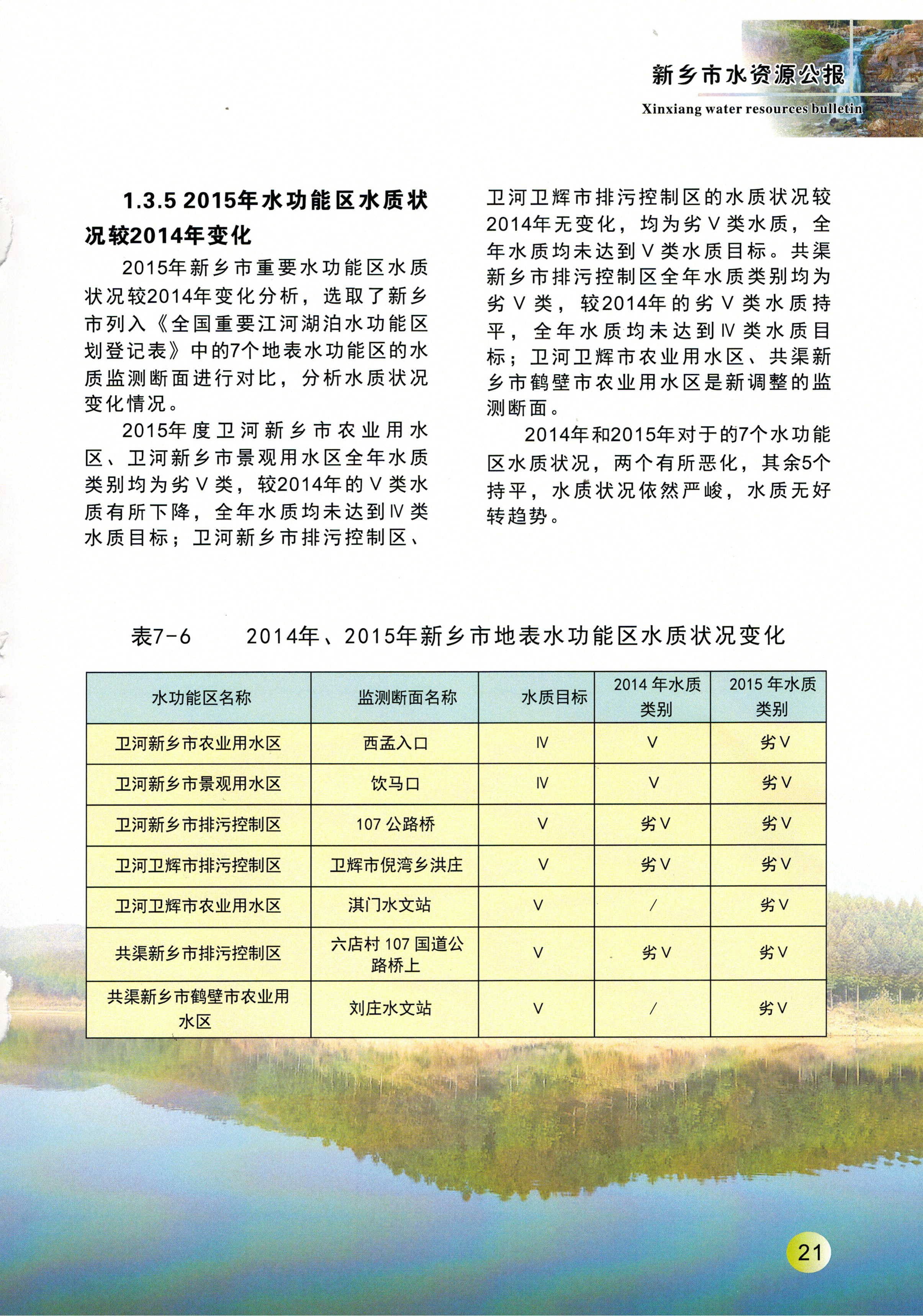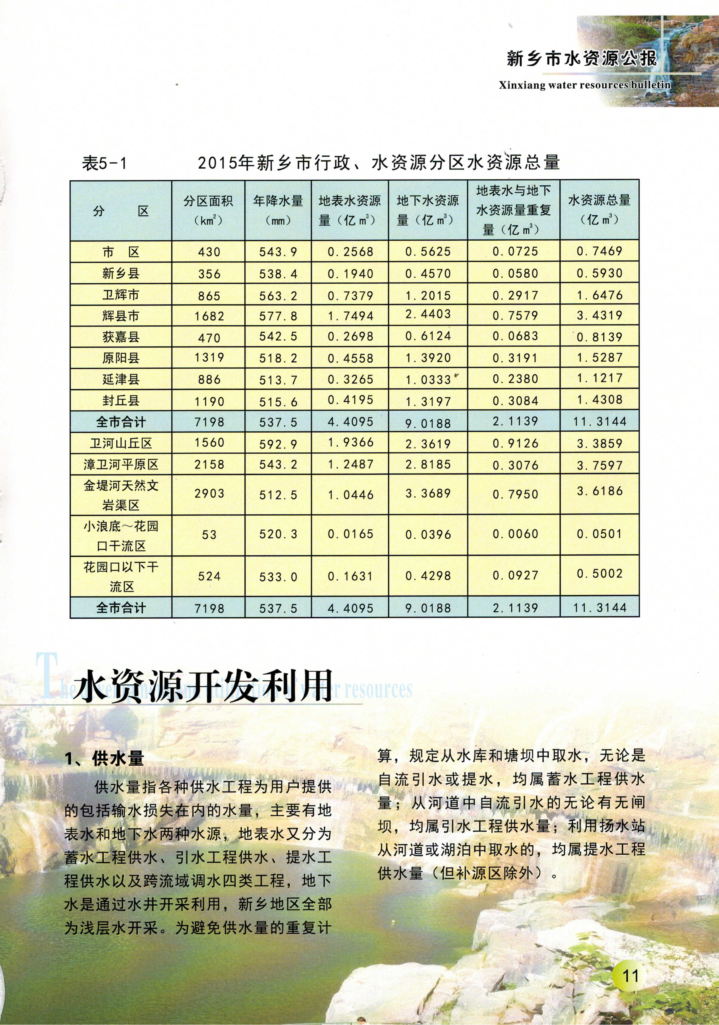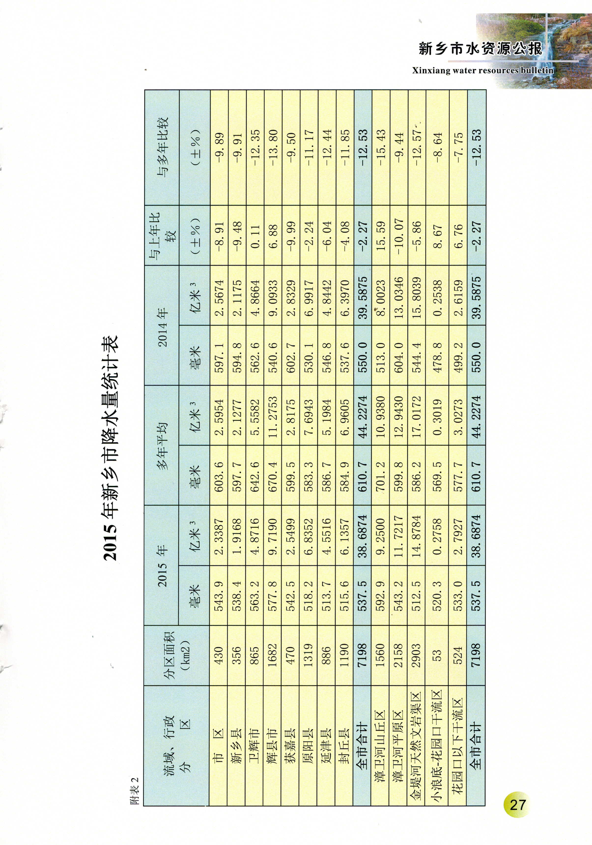 新乡市2015年度水资源公报