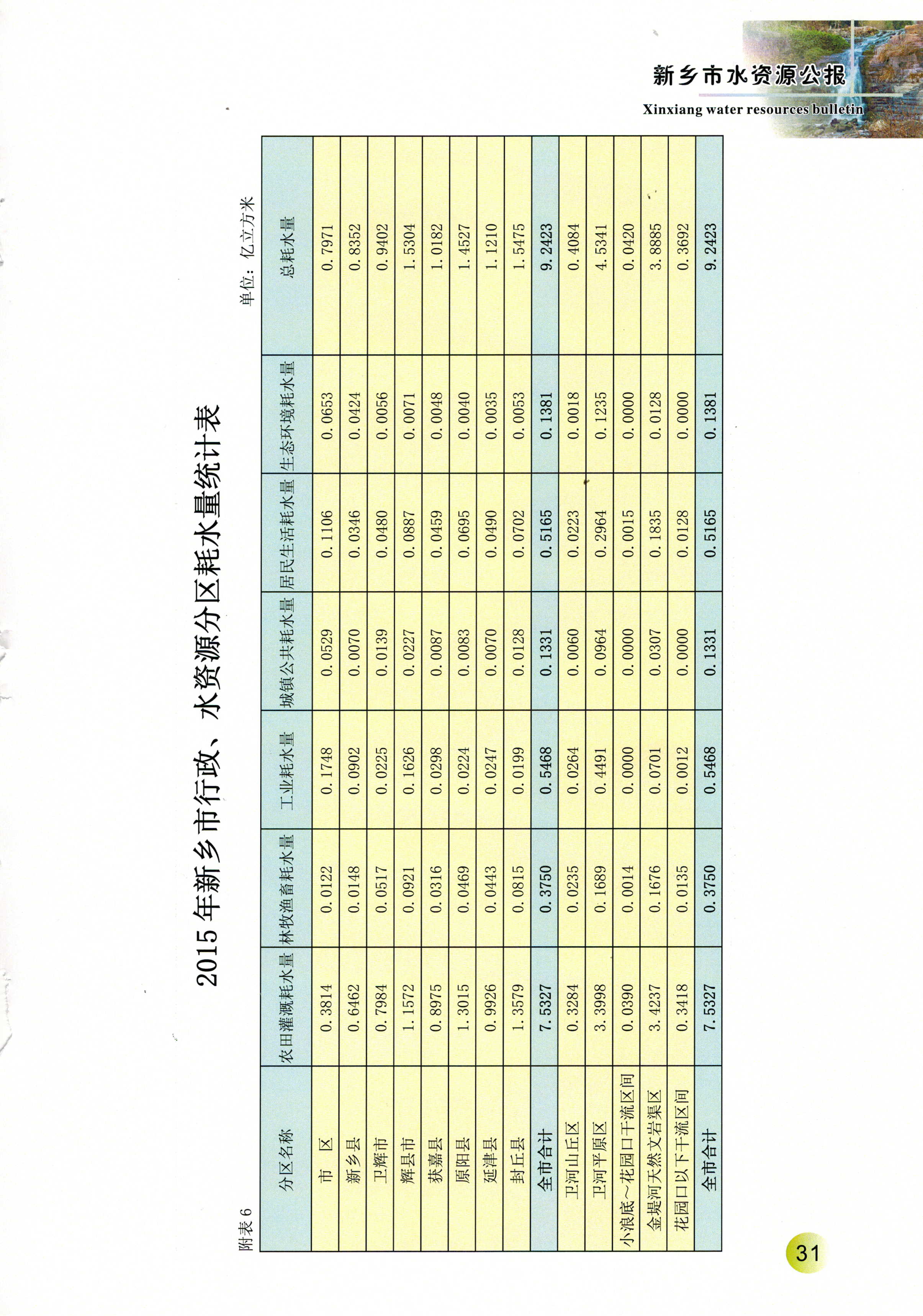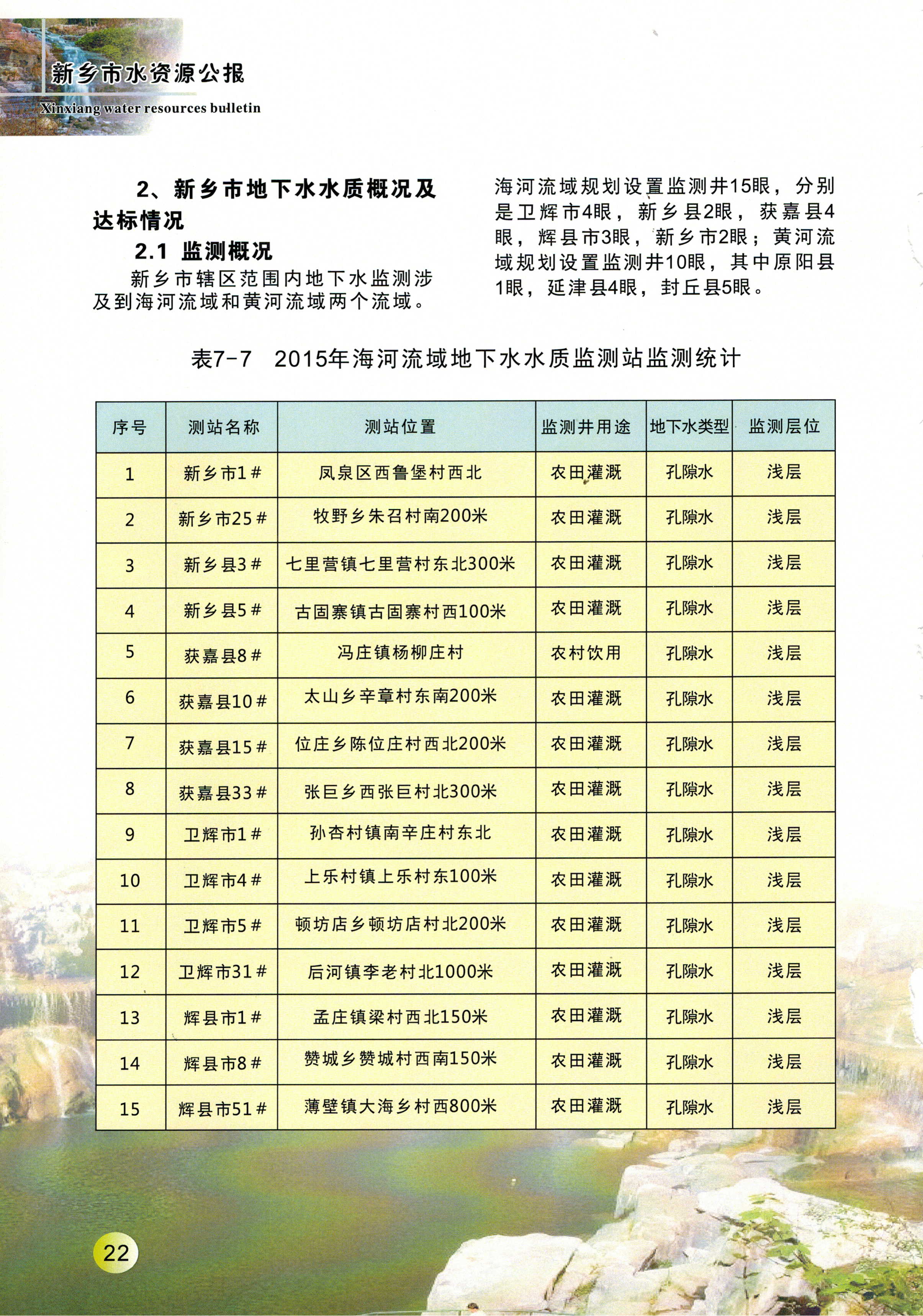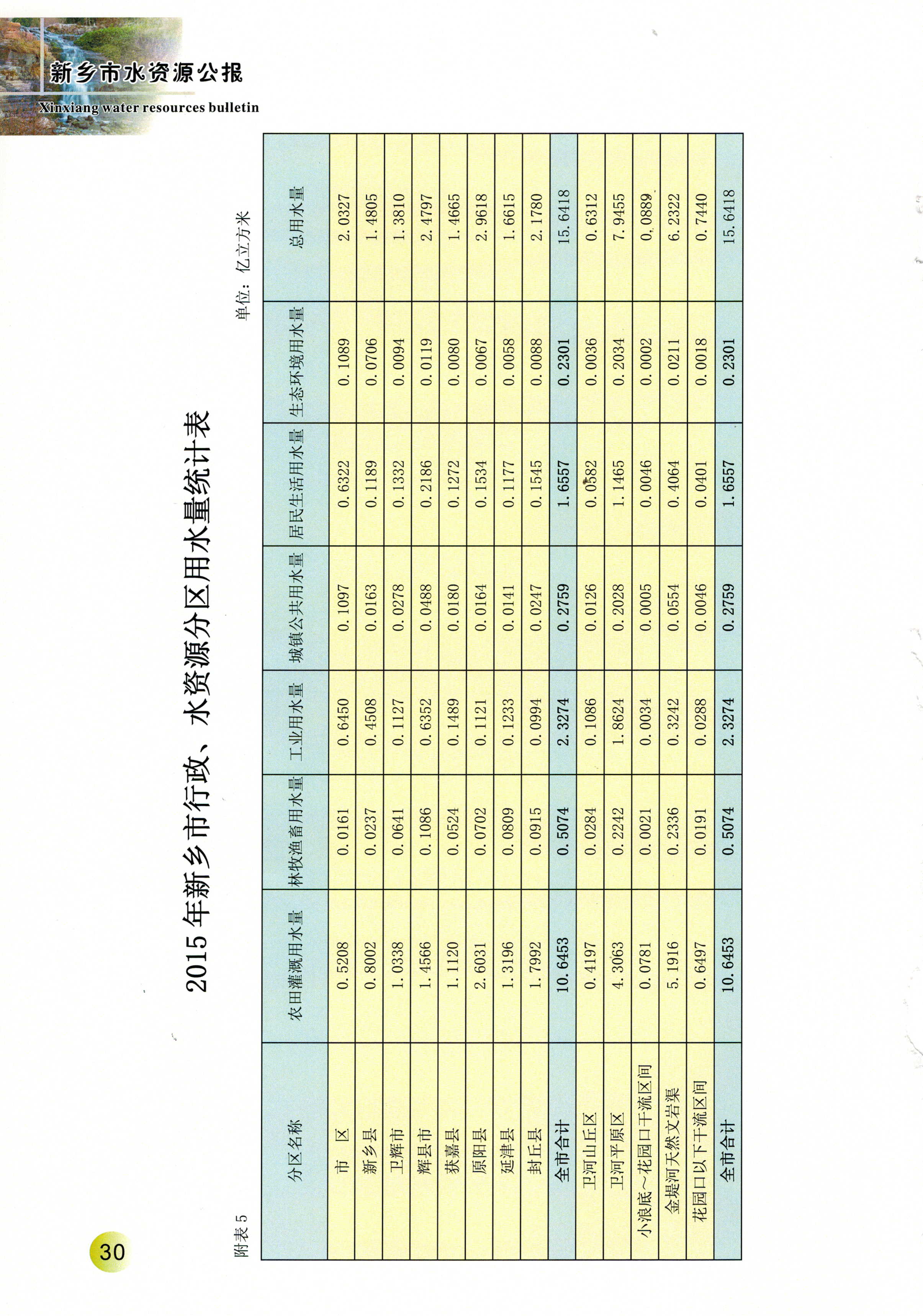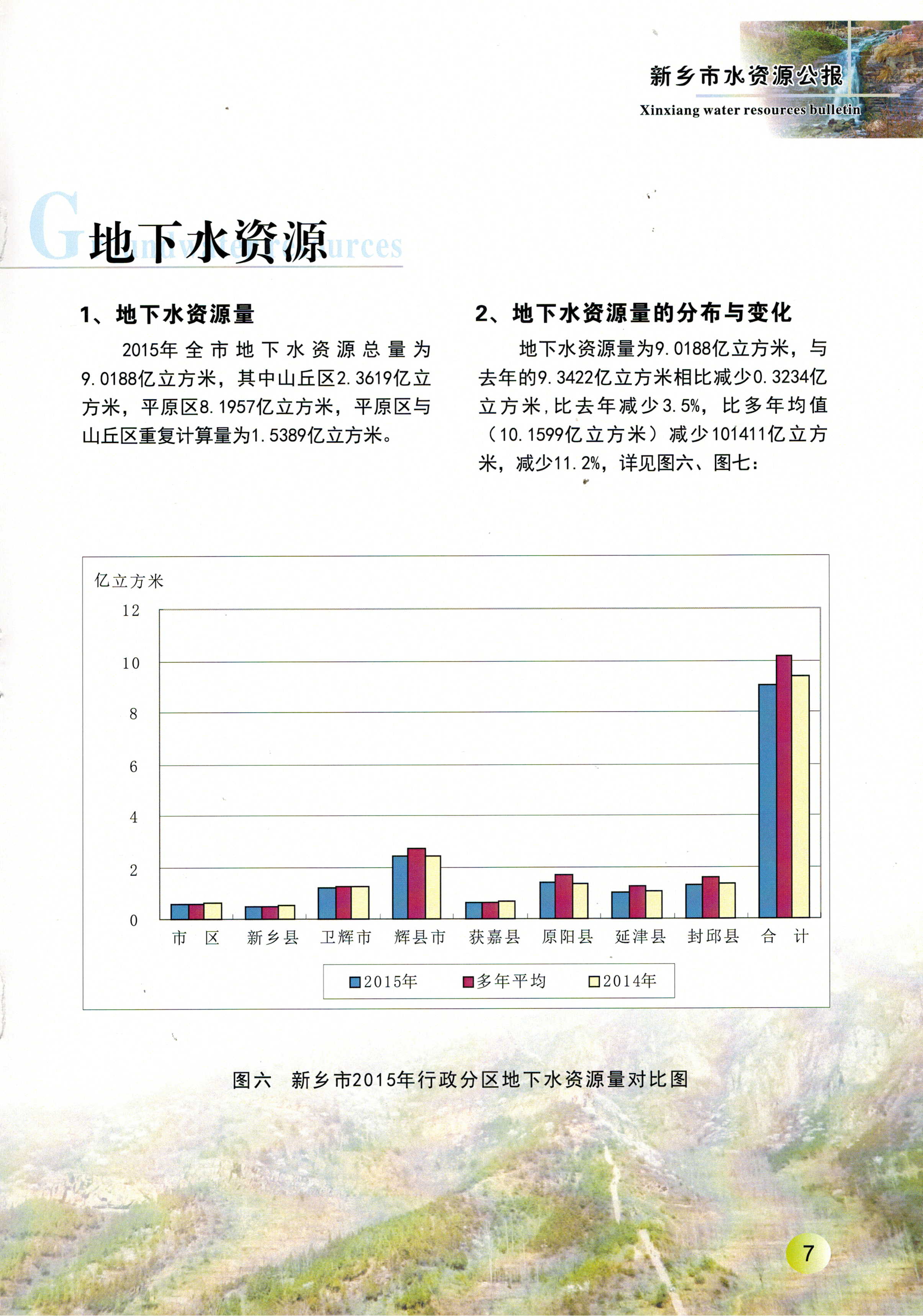 新乡市2015年度水资源公报