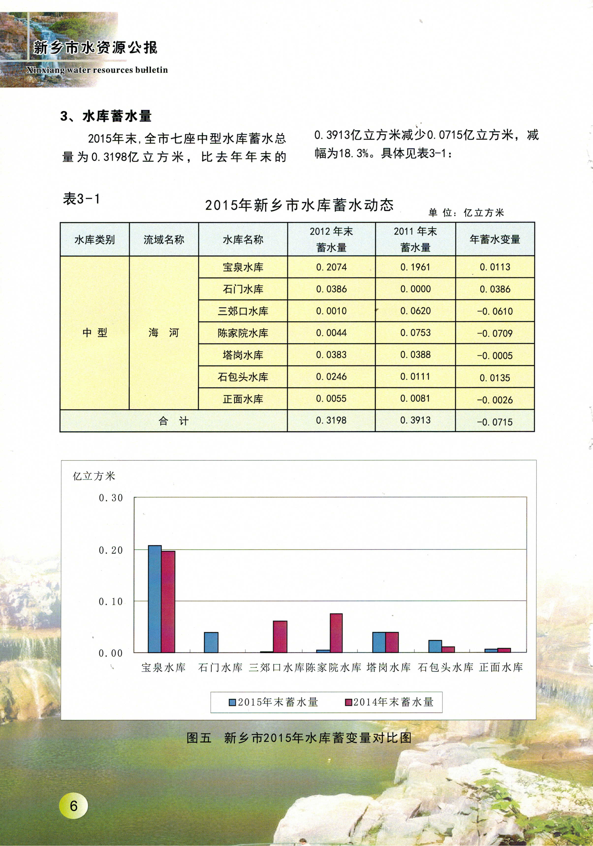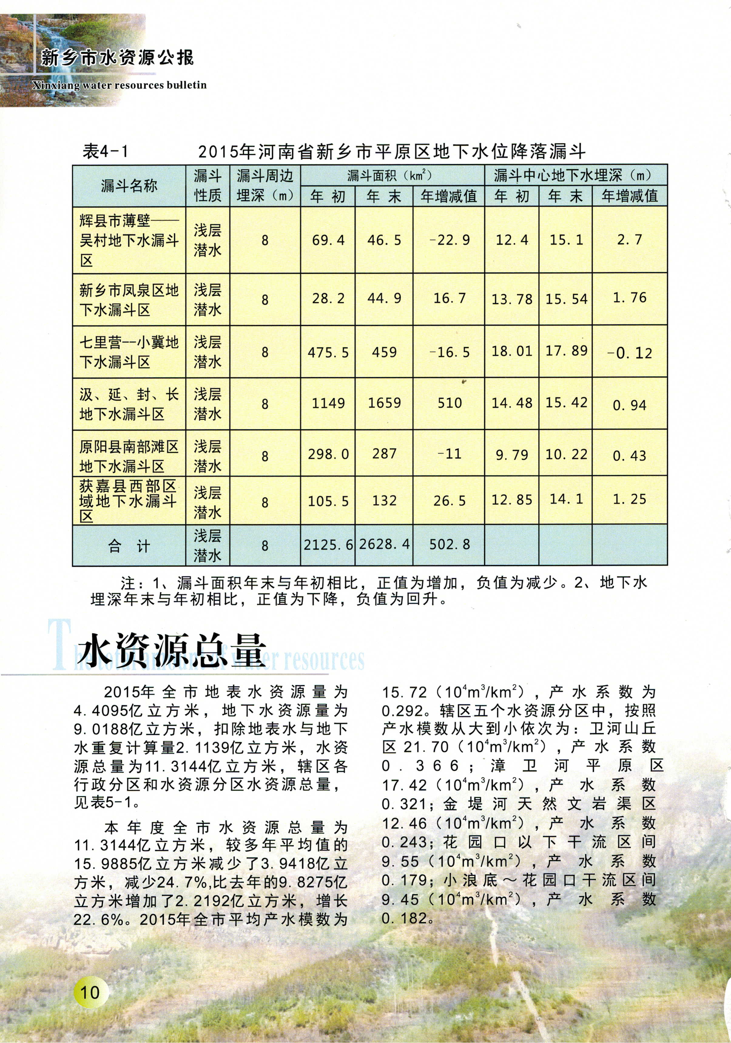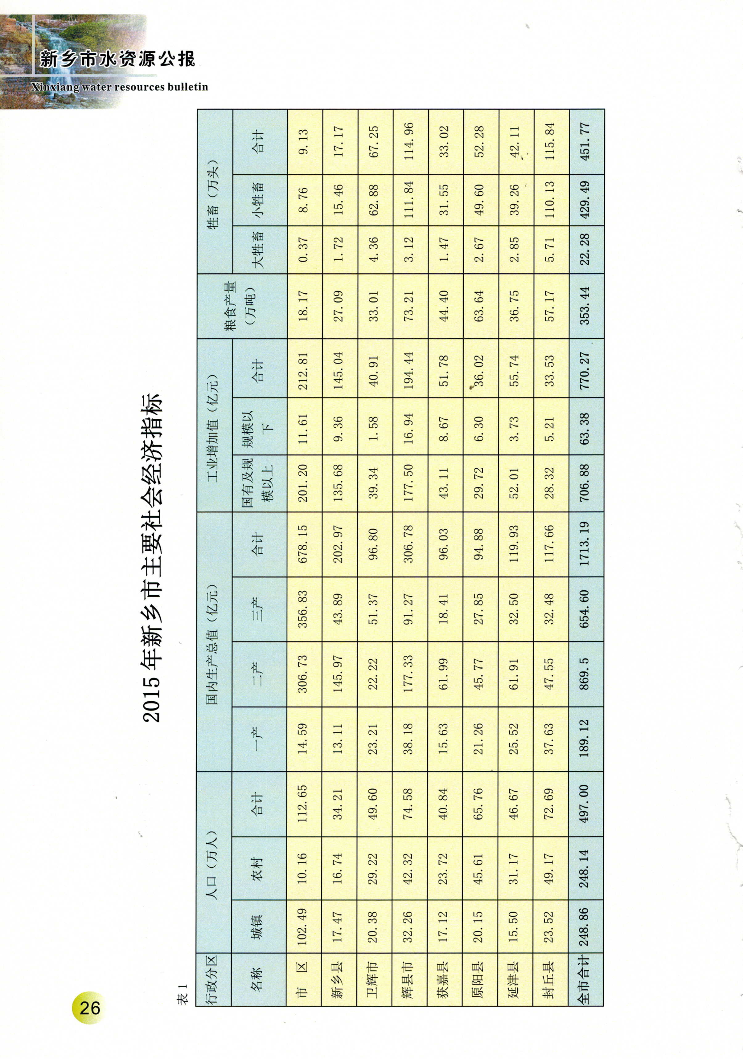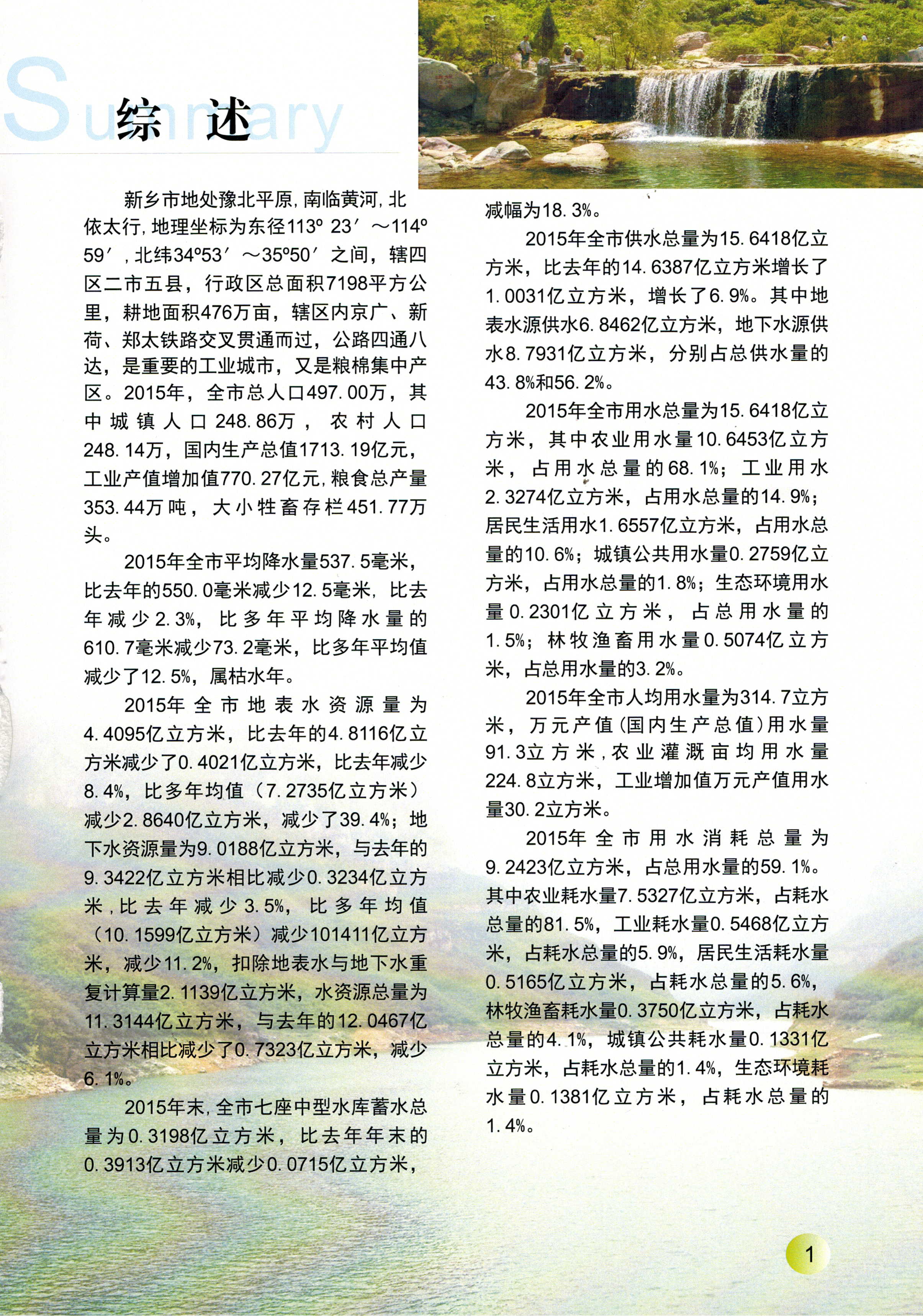新乡市2015年度水资源公报