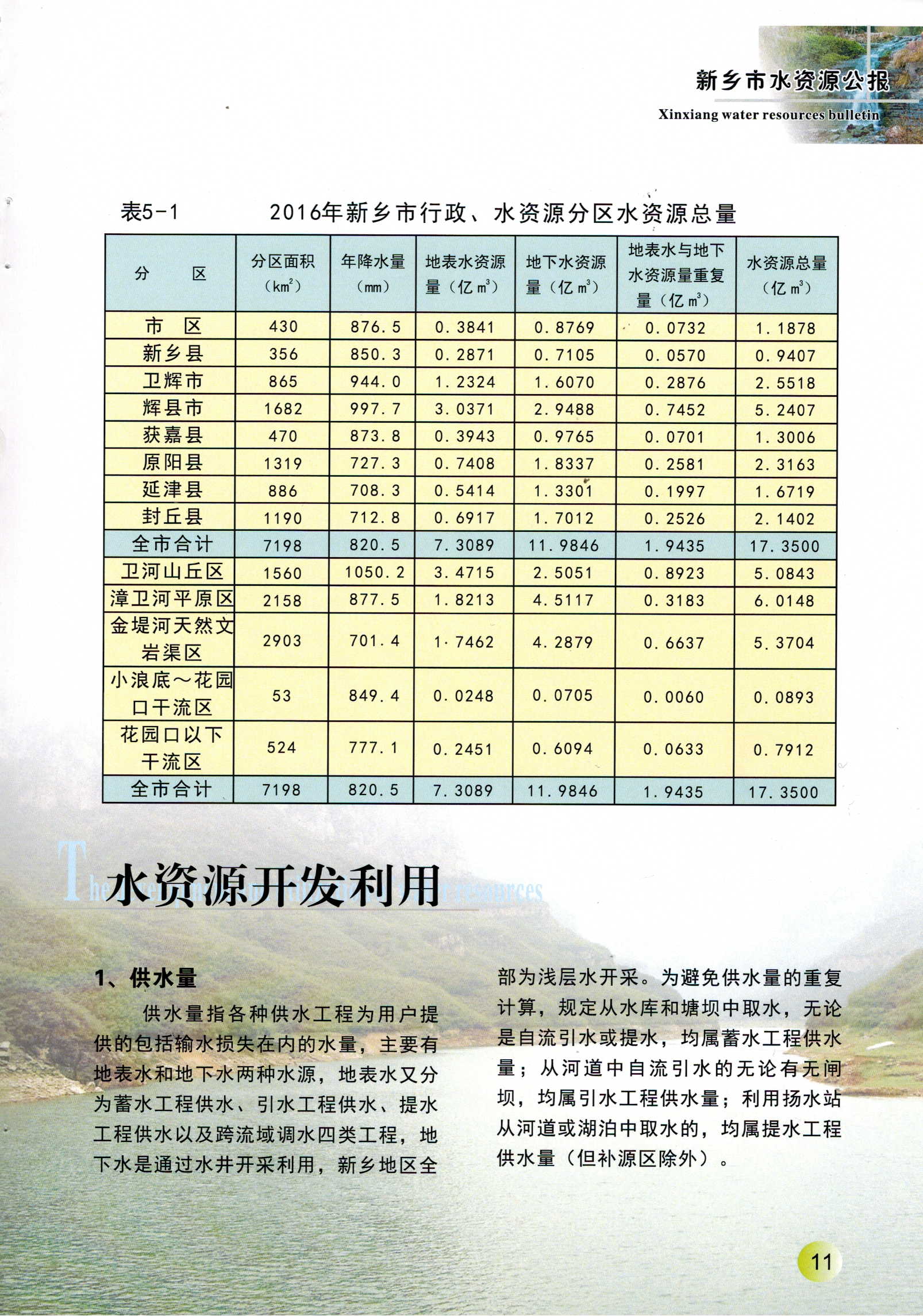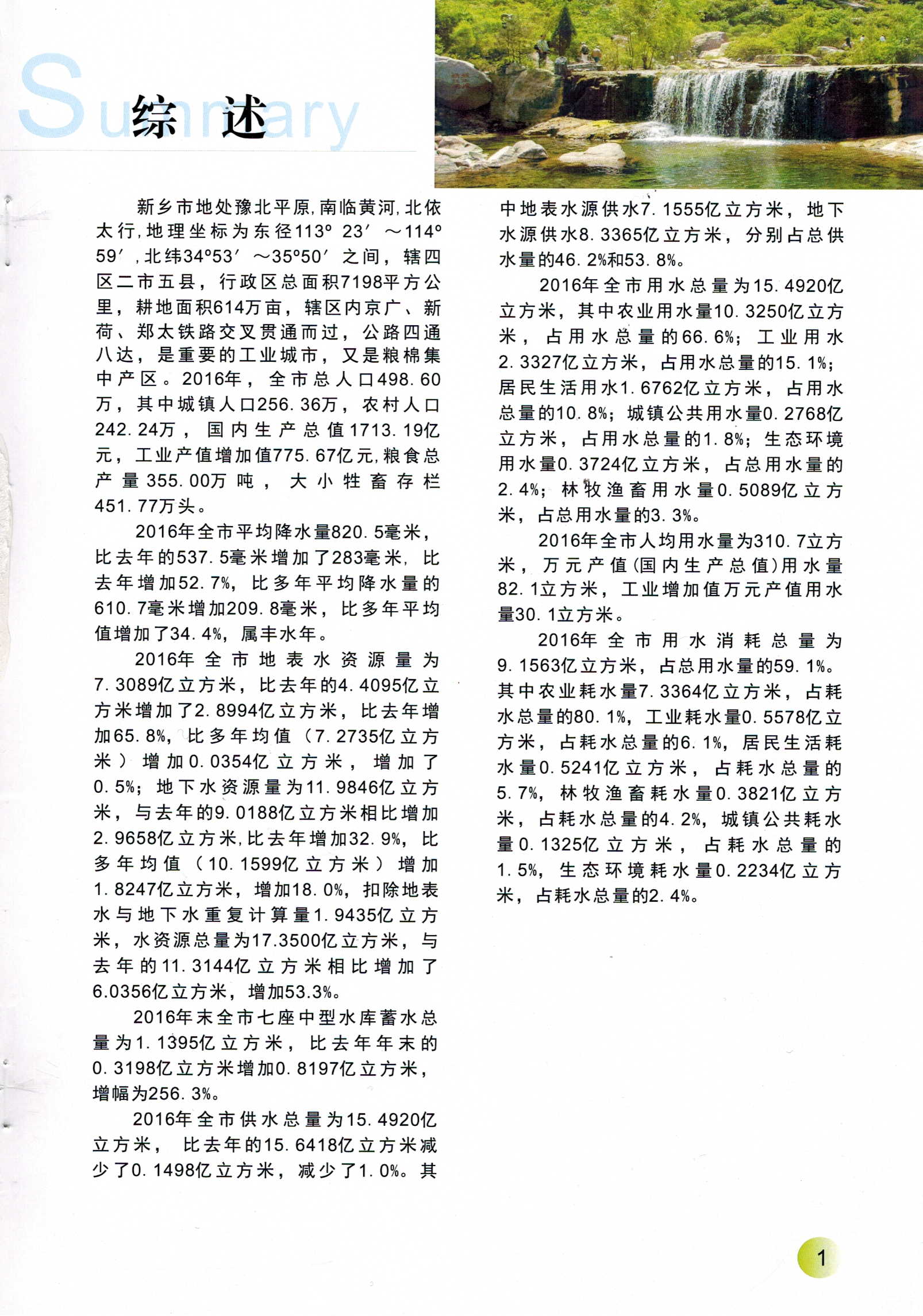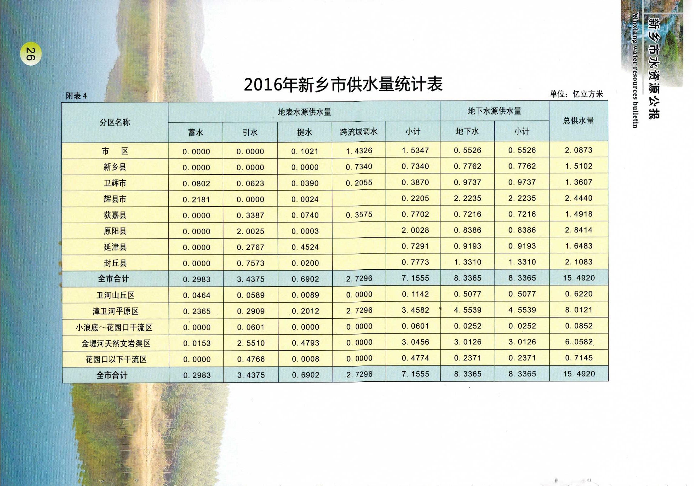 新乡市2016年度水资源公报
