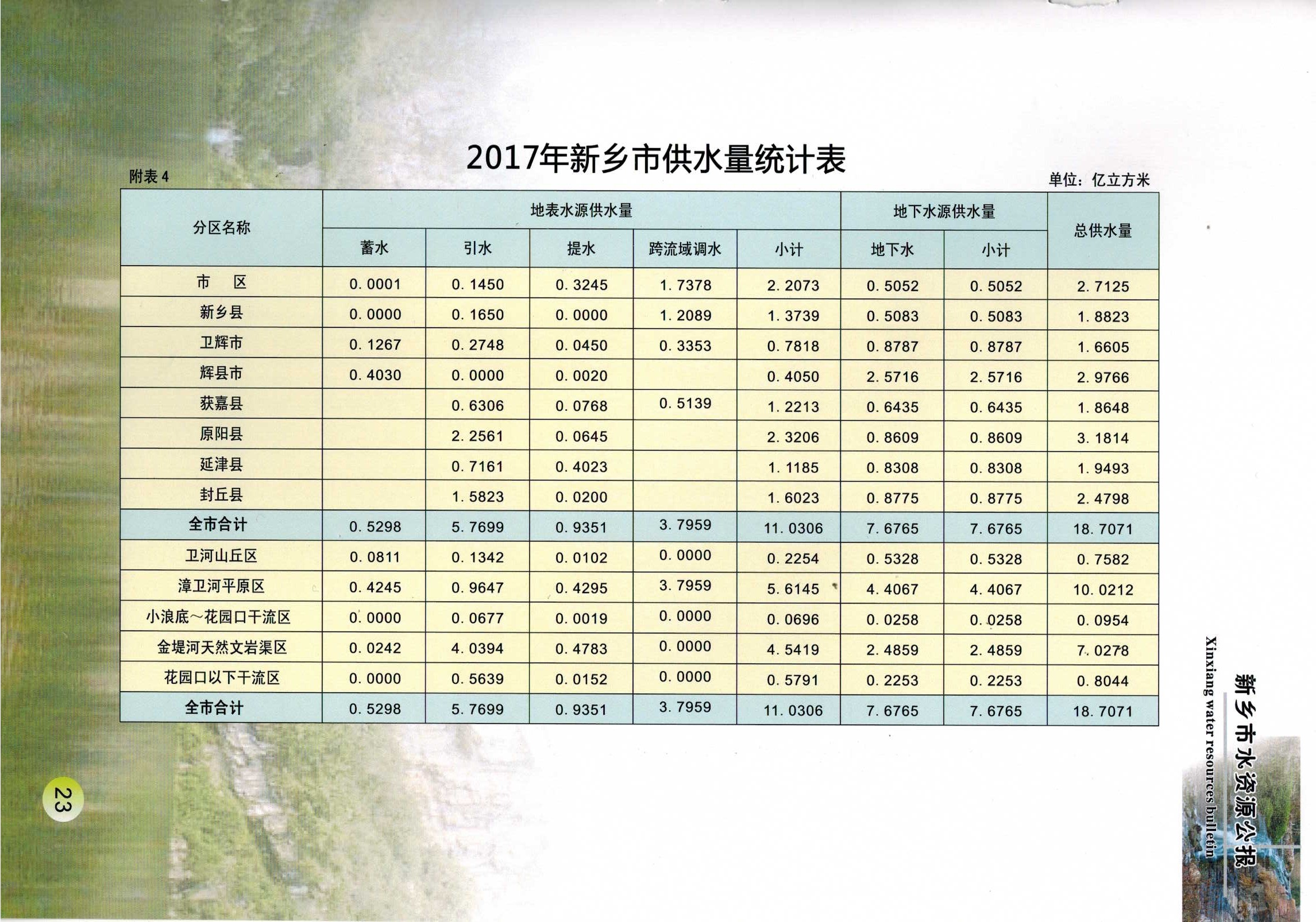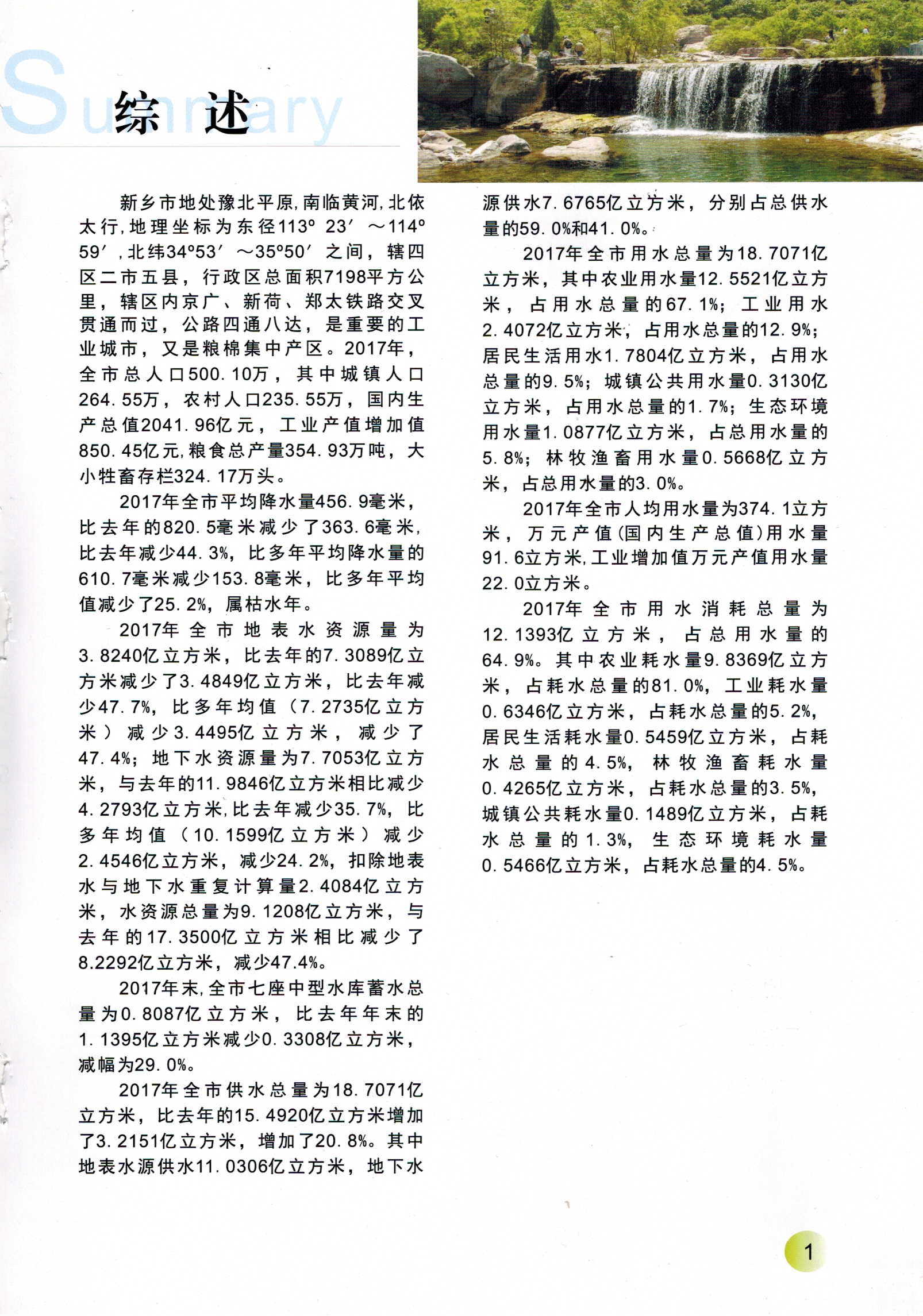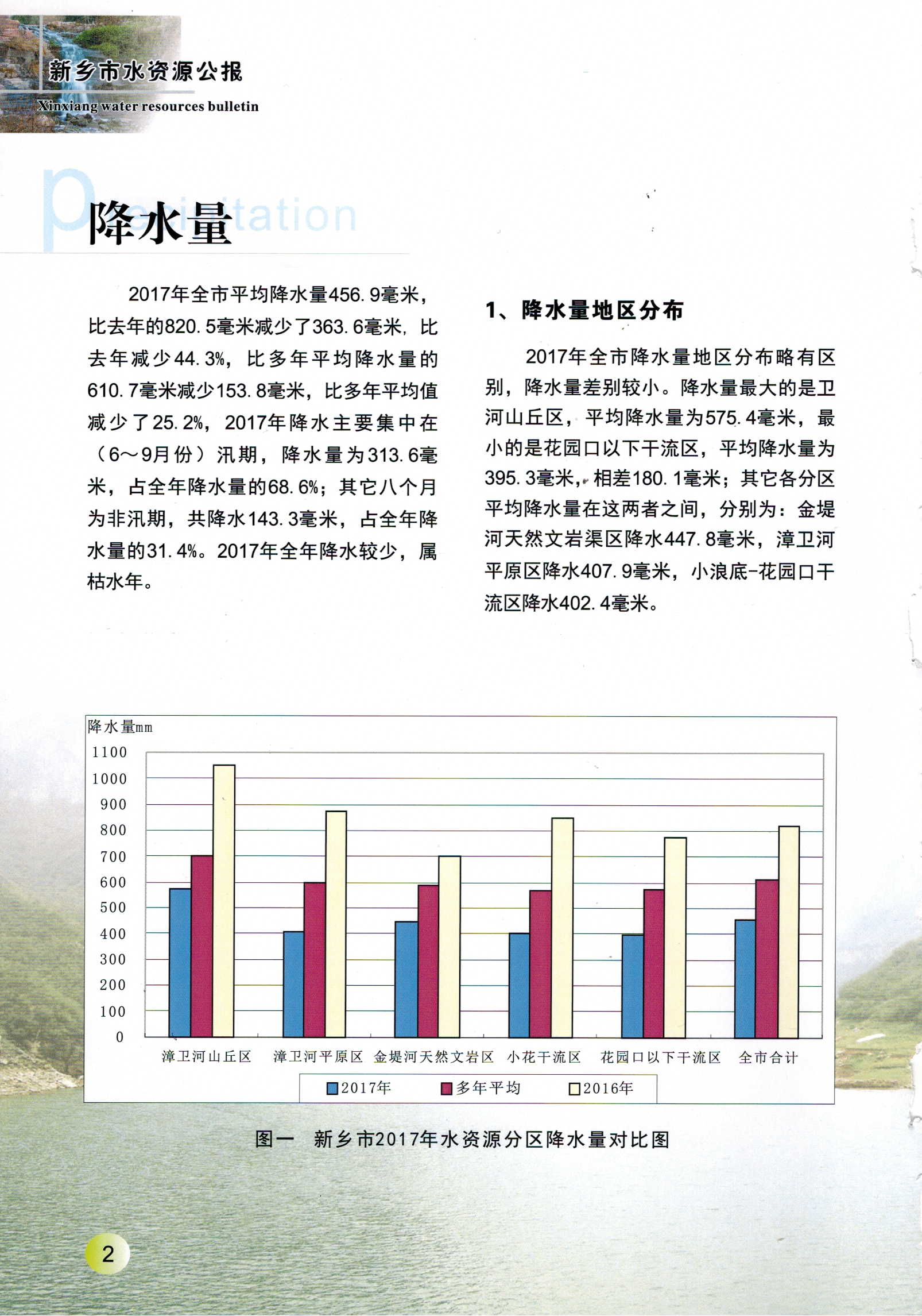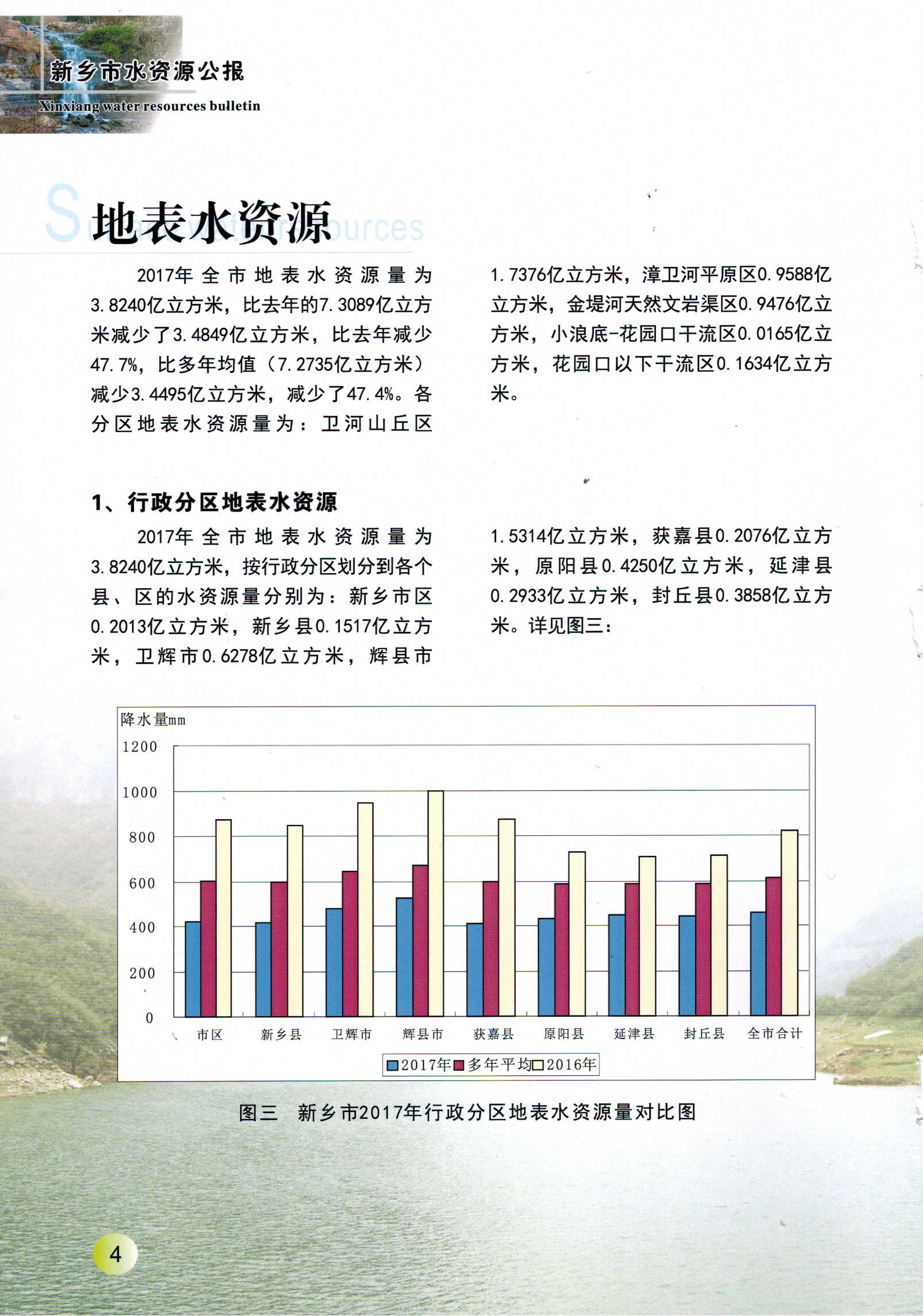 新乡市2017年度水资源公报