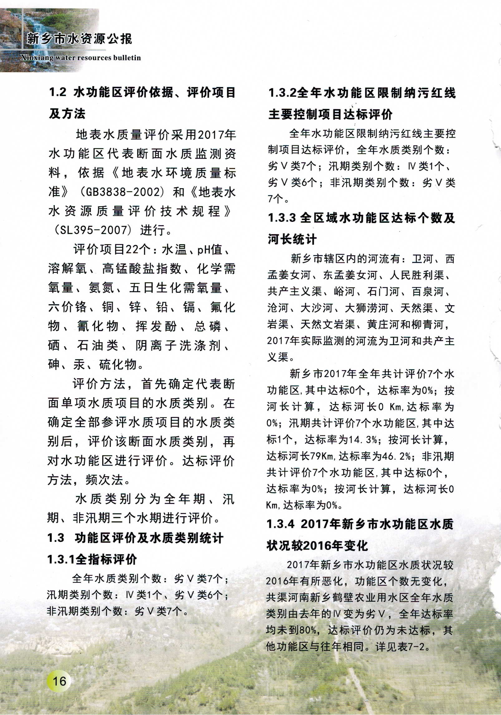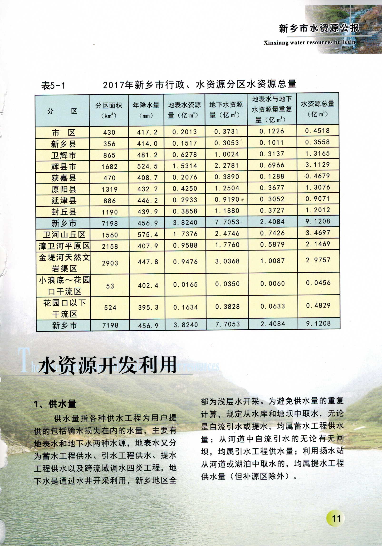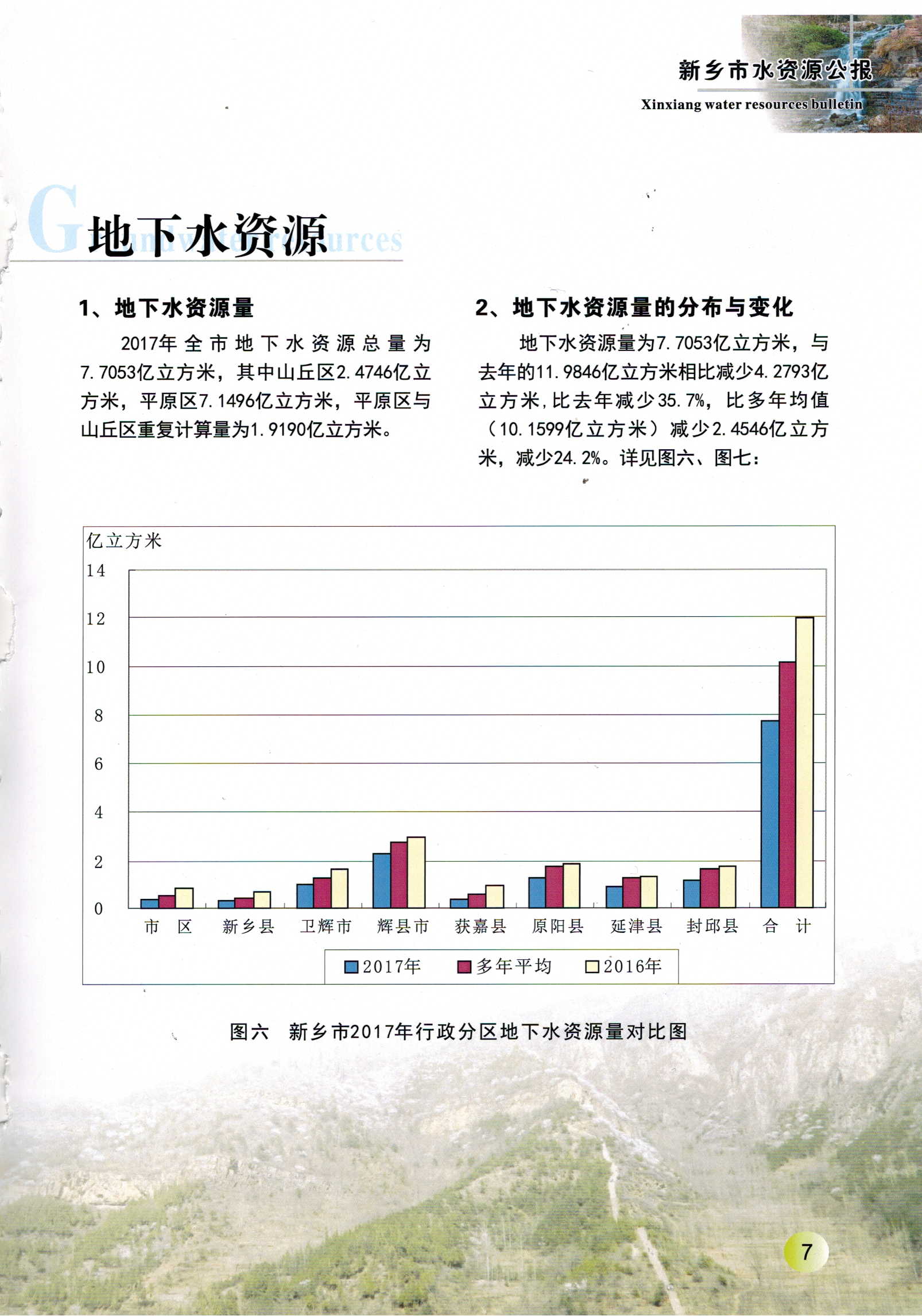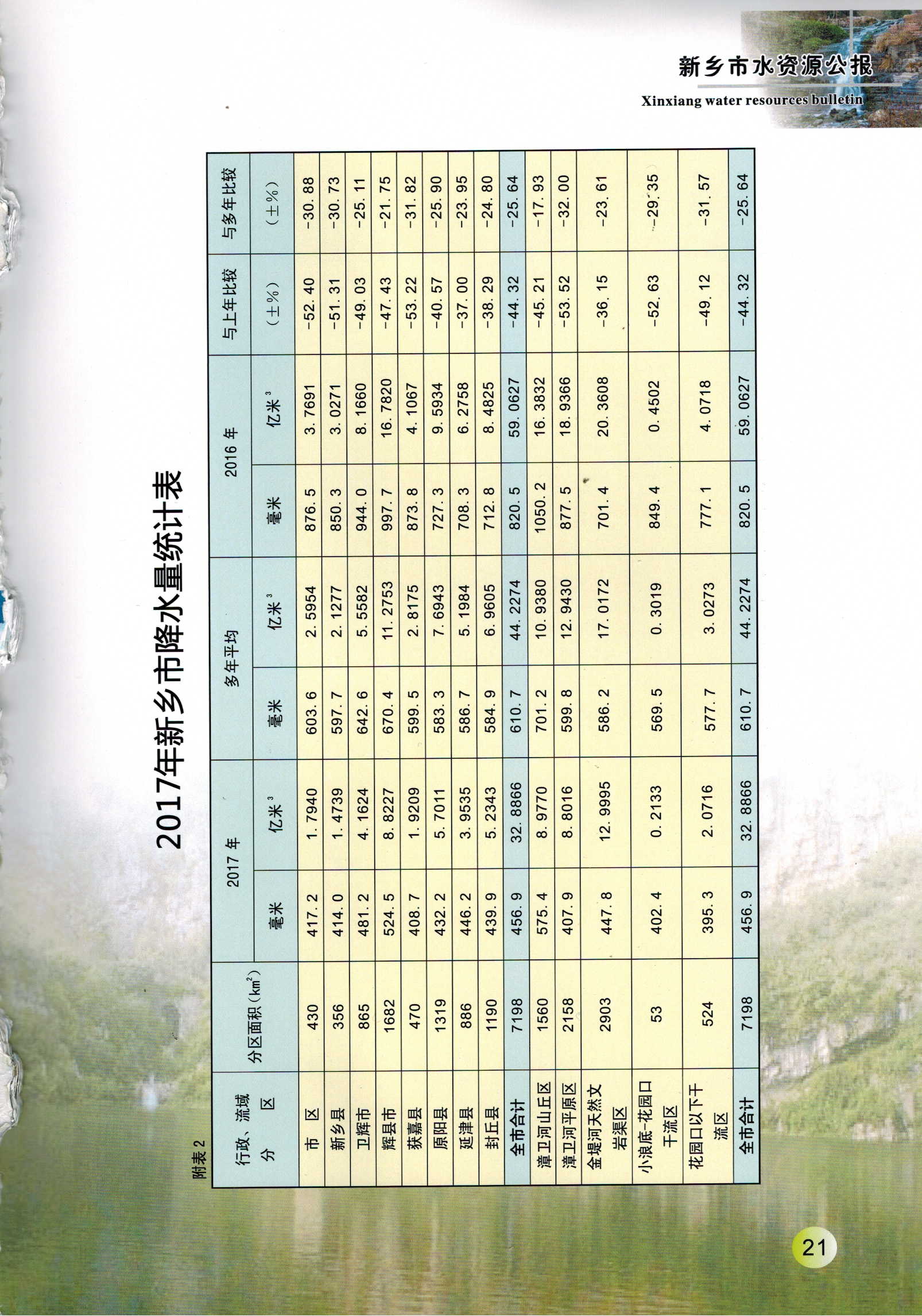 新乡市2017年度水资源公报