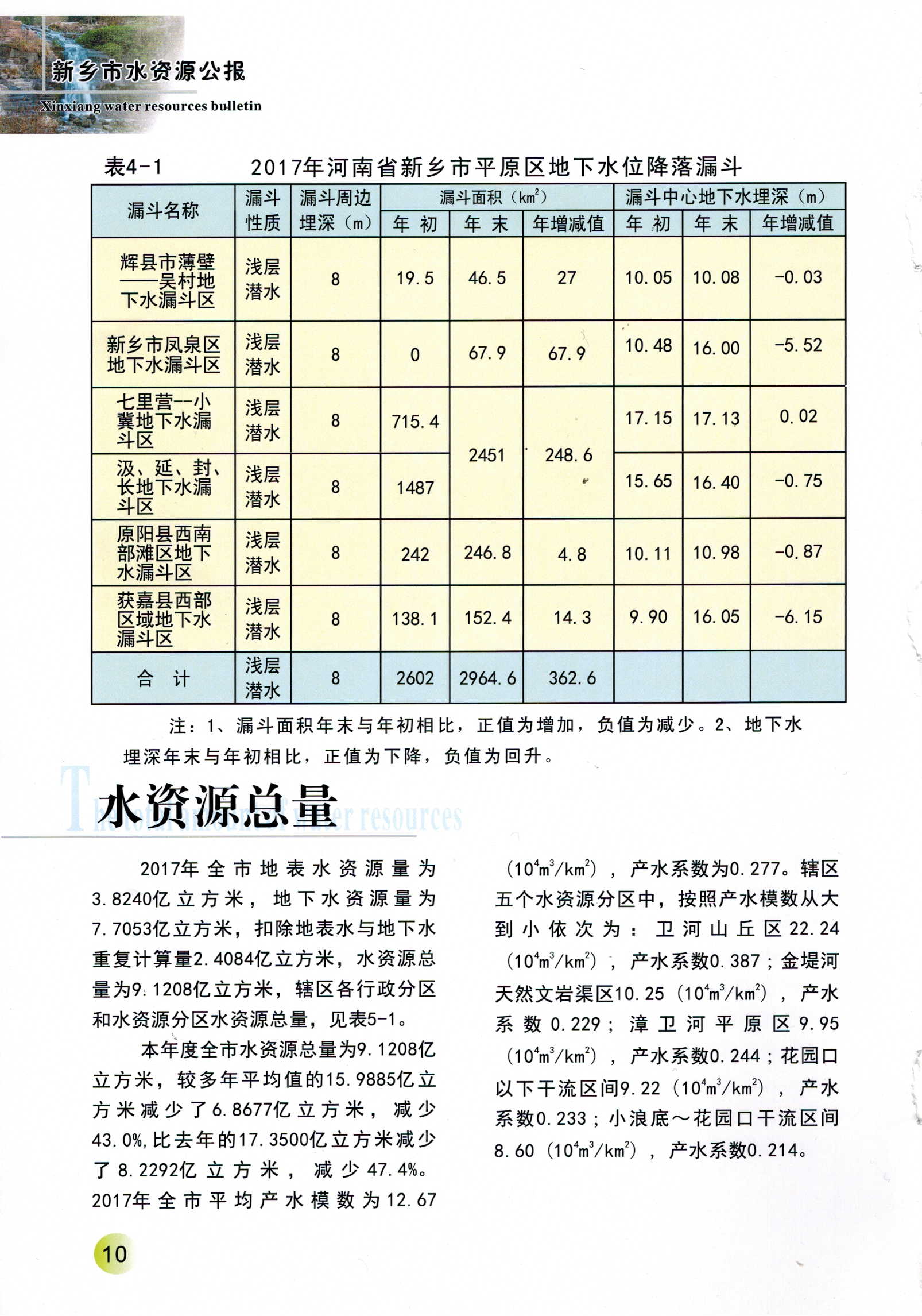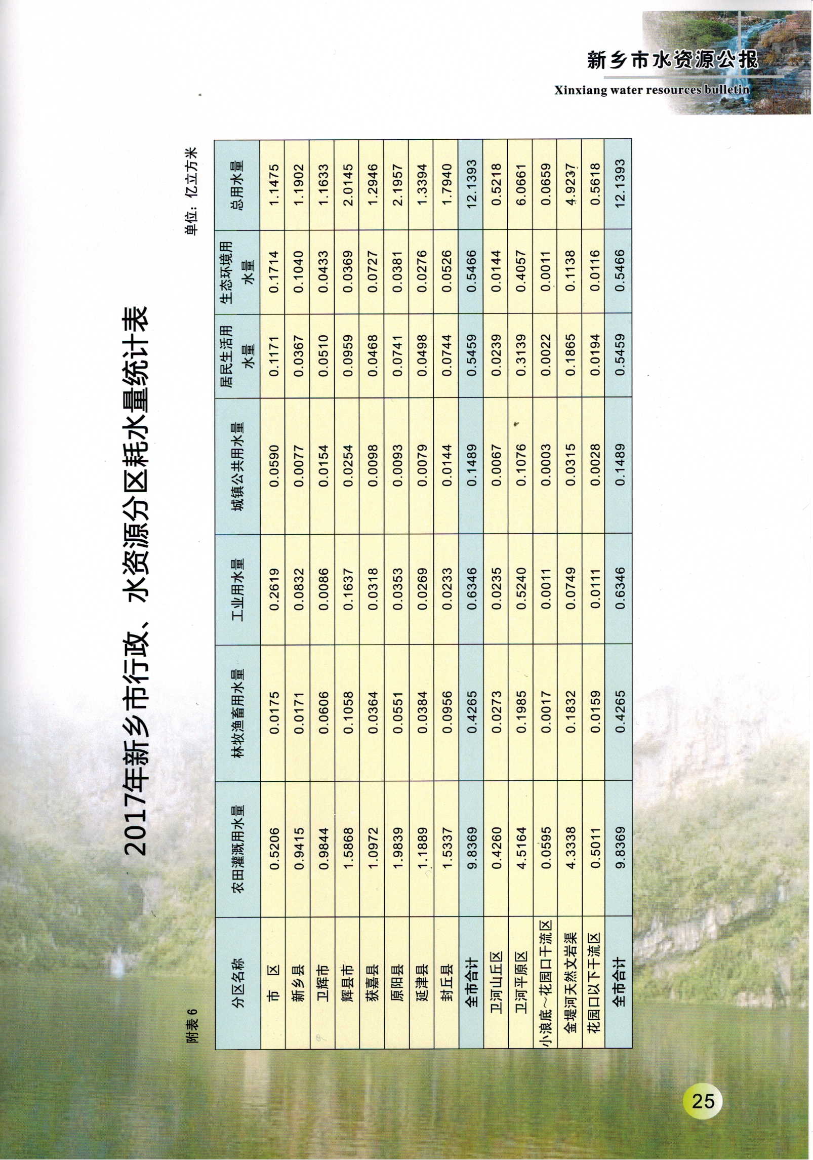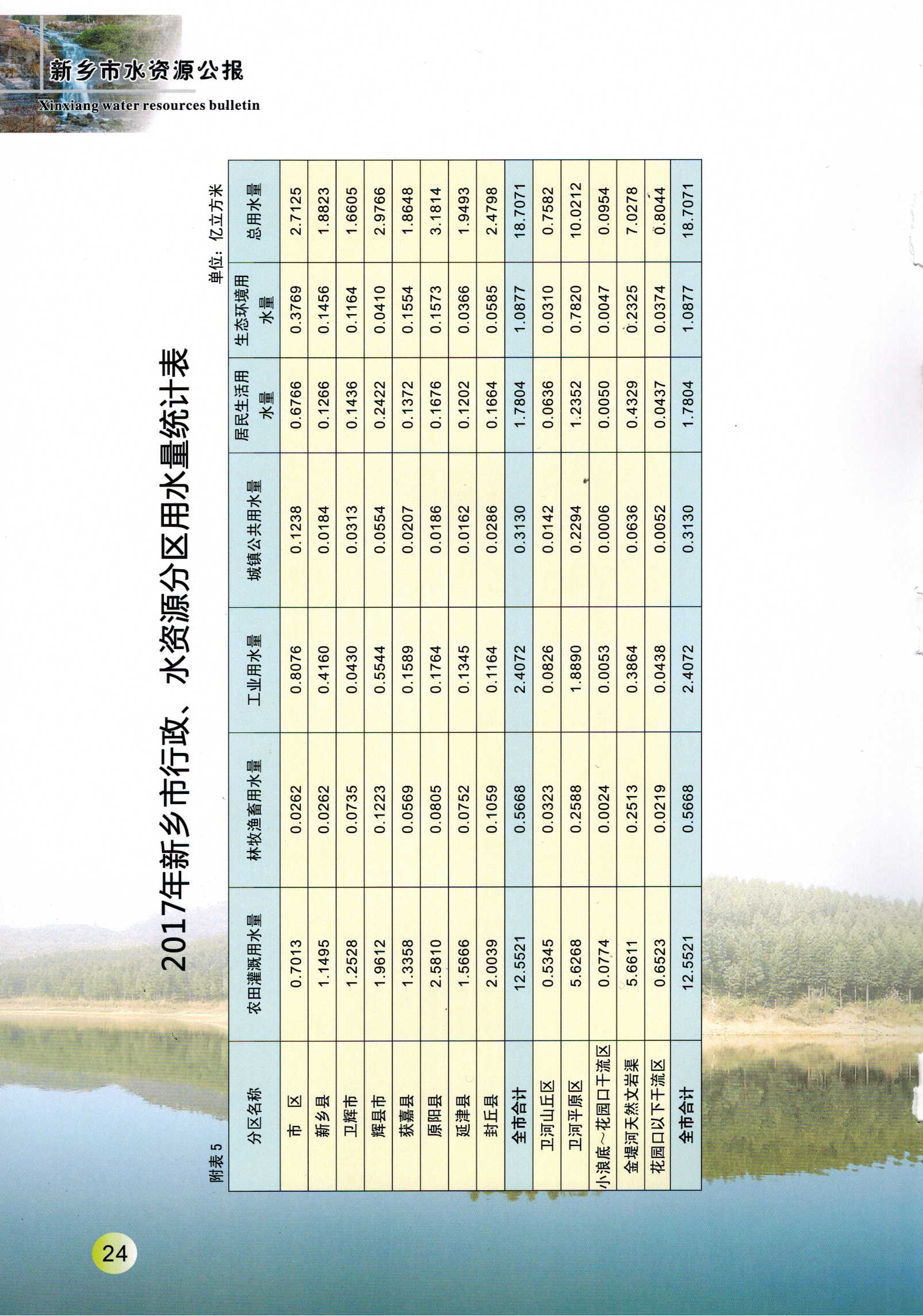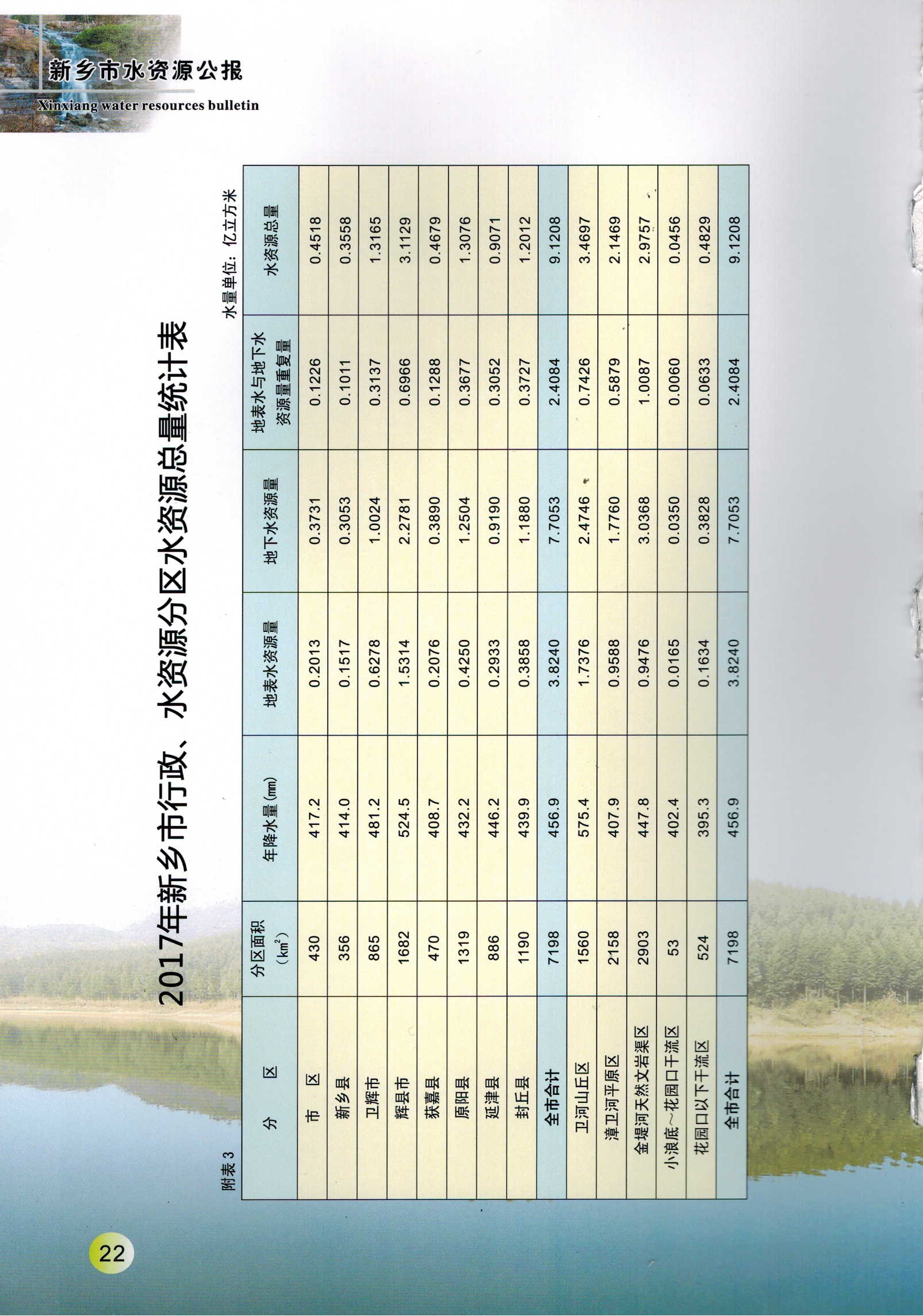 新乡市2017年度水资源公报